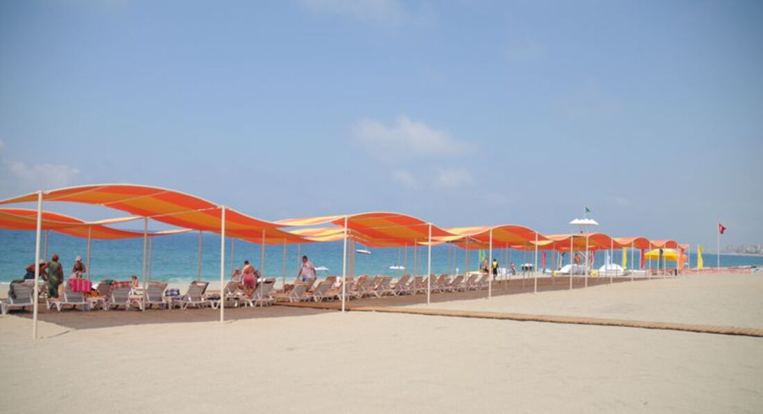 Пляж: власний, піщаний, за 2000 м від готелю, протяжність 300 м, через дорогу, душ, кабінки для перевдягання; пляжні рушники, парасольки на пляжі та біля басейну - безкоштовно. Шатлбас на пляж - безкоштовно.