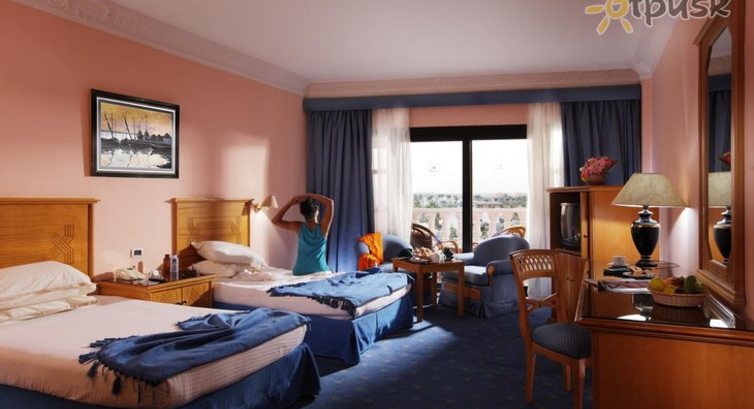 Отдыхали в отеле в феврале 2015 года. Заселение произошло сразу по приезду, ждать даже не пришлось, правда от одного номера в бунгало мы отказались, потолок протекал. Предоставили шикарный двухкомнатный номер с шикарным балконом, огромными комнатами и ванной комнатой. В номере мебель старенькая но все вполне прилично. Территория огромная, так как несколько отелей объединены в одну территорию, в первый день поехали на паровозике по территории, поездка очень понравилась (как дети ей богу)). В первые дни даже путались не знали как куда выйти, потом конечно привыкли и нашли ближайшие лазейки. Питание отличное, утром всегда питались вкусными йогуртами, фруктами, ну и пироженками конечно. Мясо было всегда, голодным не уйдешь. Персонал очень приветливый и внимательный, всегда помогали с нахождением свободного места. О море можно сказать только одно : шикарное, чистое, безумно красивого цвета. Отдельно про анимацию: такого я не видела нигде, анниматоры супер, каждый день с утра и до вечера развлекали народ везде где только можно, а уж эти танцульки под зажигательные арабские мелодии на берегу моря!!!!. Большой им респект. Ездили на экскурсии которые покупали у торговцев бегающих по пляжу с разными предложениями, проблем не было, все четко. Отдых ооооочень понравился, в этот отель вернулась бы еще раз. Надеюсь получится когда стабилизируется сложившаяся обстановка.