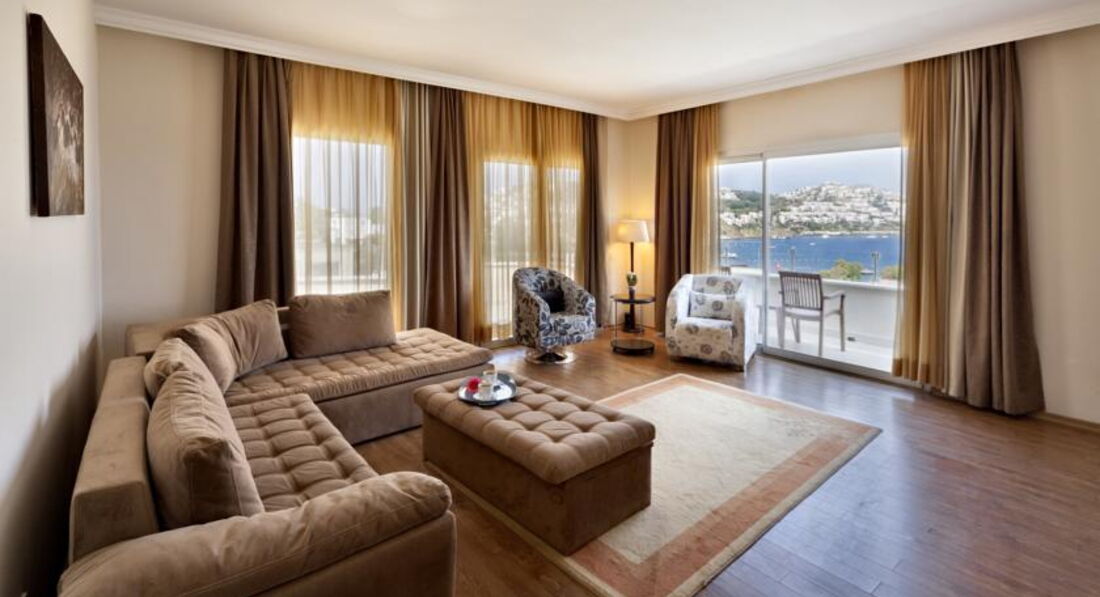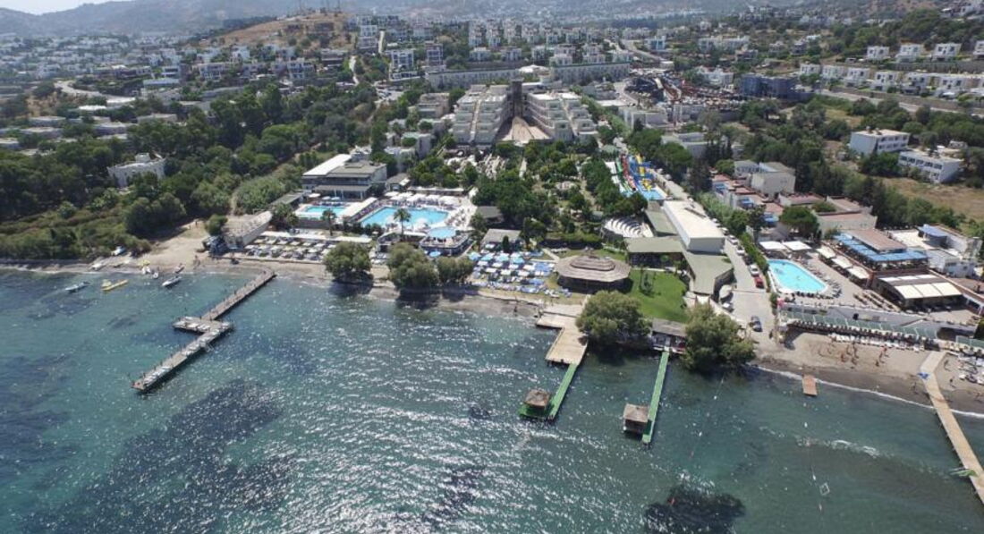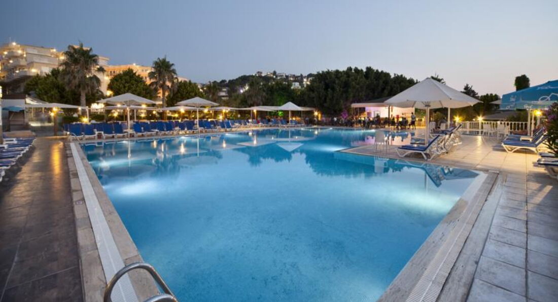 Отдыхали в этом отеле с 25 июля по 8 августа 2015 г. впятером (я, мои родители, мои сыновья 16 и 3 года). Размещение у нас прошло очень удачно. Родители с младшим сыном - в главном корпусе № 1320, а мы со старшим сыном в корпусе "Анекс" № 3202. Оба номера на втором этаже. Хочу сразу сказать, чтобы не пугались корпуса "Анекс". Номера там более современные, очень уютные, комфортные. Никаких проблем. Советую, если едете парой. Третью кровать там особо не поставишь, будет тесновато. Далее. Питание разнообразное, все вкусно и красиво. Официантки милые, приветливые, убирают мгновенно. Мест хватало всем. В отеле в основном отдыхают турки (50%), поляки, англичане и др. Русских очень мало. Примерно 5 семей за наш отдых было. Все перезнакомились. Территория не очень большая, но уютная. Море чистое. Очень удобно, что бассейны расположены совсем близко к морю, поэтому можно было смыть соленую воду. Аниматоры приветливые (Артем, Катя, Юля), мы подружились. Старший играл в волейбол с турками и англичанами, а т.к. он играет очень хорошо, то сразу перезнакомился и потом ходил по отелю и с ним многие здоровались. Вообще, за 2 недели отдыха я не услышала ни одного плохого слова, не увидела ни одного косого взгляда ( это по поводу отношения к русским в наше сложное время). Весь персонал приветлив, доброжелателен. Ходили семьей в рыбный ресторан на крыше. Очень красивый закат! Со старшим сыном ездили в Памуккале и в Стамбул. Обе экскурсии прекрасны! Особенно Стамбул. Конечно, утомительно не спать более суток, но впечатления того стоили. Очень советую! Но конечно, детей маленьких (до 8-10 лет) лучше не брать. Тяжеловато. Хамам не очень понравился. Возят далеко и делают не очень. Насчет кожаного магазина. Если вы планируете поездку в Стамбул - лучше покупать там (дешевле), нас завозили, ассортимент похожий. Если не планируете - можно и в Бодруме. Около отеля каждые 15 минут останавливается маршрутка - до поселка Яликавак. Стоит 1 доллар или 2,5 т. лиры. Обязательно съездите и посмотрите на яхты. По четвергам там рынок. Можно купить всякое разное среднего качества. Что еще? На экскурсии в Памуккале на обратном пути завозят на дегустацию вина. Там все дорогое (вино, рахат и т.д.) по сравнению с соседними магазинами. Не переплачивайте. Вообще, этот отель хорош тем, что он удачно расположен. Легко добраться в Яликавак. Так сказать, к цивилизации. Отдых нам очень понравился, не хотелось уезжать! Море, виды - все супер! Советую!