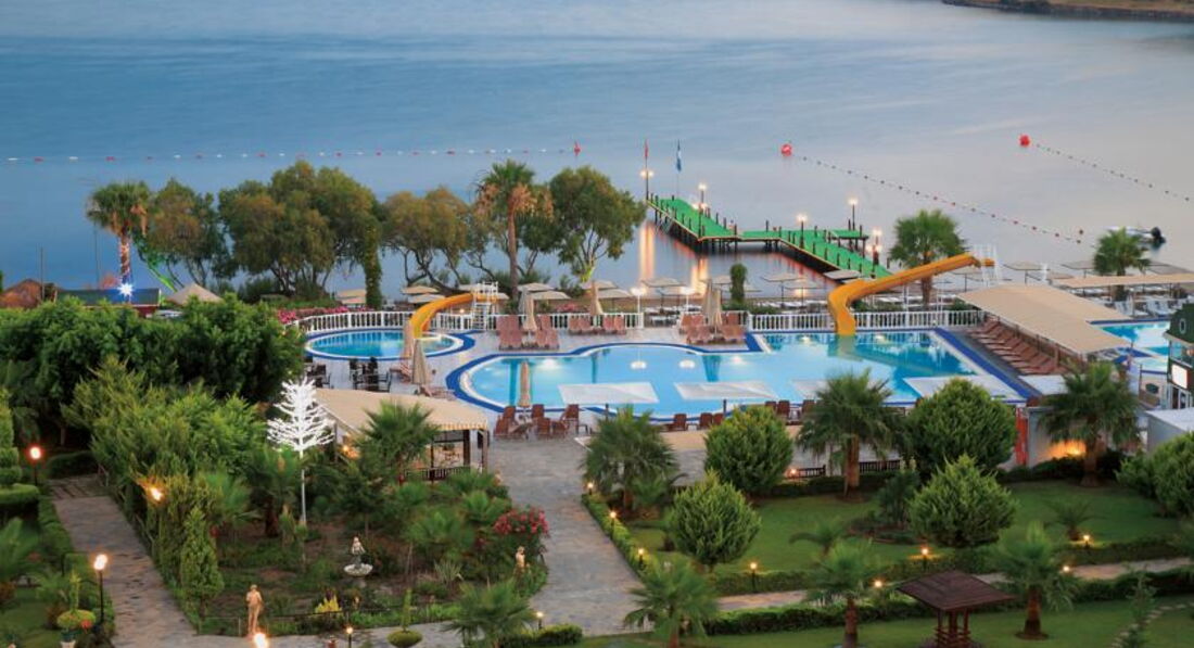 Отдыхали в отеле в июле 2012 г,отель расположен в 2 км от Ялыкавака,ходили на рынок и гулять пешком.Отель большой,номера неплохие,но во многих номерах протекает душевая кабина,так было и у нас.Неоднократно писали на рецепшн,приходили,смотрели,кивали головой и ничего не делали.Большой + отеля - питание,очень разнообразное,очень вкусная выпечка,каждый день торты,есть снек - бар,который очень нравится детям.Когда мы отдыхали была отличная анимация,очень нравились уроки танцев со Стефаном.Пляж маленький,заход с понтона,море мелкое,дно песок,для детей удобно.Поскольку это залив,то когда были волны,то иногда к берегу прибывало разный мусор.Из развлечений нам нравился бесплатный бильярд и настольный теннис,но расположены в помещении без окон,было душновато.Для любителей кофе на рецепшн круглосуточно турецкий зерновой кофе,очень достойный.В целом,отель понравился.