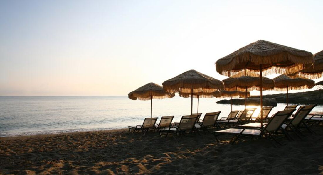 Лежаки та парасольки надаються за додаткову плату (8 євро за 2 шезлонги + 1 парасольку).