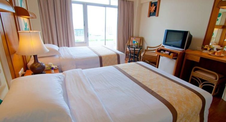 Отдыхали вдвоем с 12 по 29 февраля 2016.Нас устроило все и все понравилось. Заселили в течении 5 мин.Номер не люкс,но всегда чистенько ,убрано,каждый день две бутылки мин. воды 0.75 бесплатно.Большие кровати,телевизор,холодильник.Ванна,душ.Есть балкон.Для тех кому номер только переночевать - идеально. В отеле есть отличный бассейн,всегда чистый.Завтраки как по мне нормальные,вкусные,местами острые ,но не все,нас все устроило.Рядом огромный торговый центр в котором можно не дорого покушать как тайскую так и нашу еду,для тех кто не хочет кушать в макашниках на улице.А вообще там миллион мест где можно покушать ! В море возле отеля мы не купались, так как море там грязное,всегда ездили на остров. Единственный минус это караоке которое находится возле отеля и работает до 6 утра и они реально поют до 6 утра.Окна нашего номера выходили не на бассейн,а на ночной рынок и кафе.Но это было всего пару раз,что они не давали поспать . Может они орали в микрофон и каждый день,но мы туристы активные и за день наматывали такой километраж ,поверьте там есть где ходить,что когда приходили в номер падали на кровати замертво и нам это караоке было ни почем ! Так что сказать ,что это огромный минус - нет.Итог : в отеле все устроило,все круто,и караоке абсолютно не испортило впечатление.Если хотите валяться на пляже как сосиска ,а вечером пить ром в номере,то вам не сюда ) Задавайте вопросы )