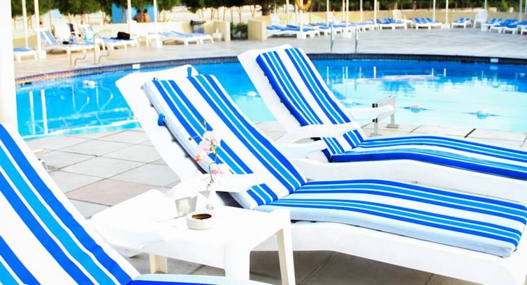 Бассейн маленький, мелкий, без подогрева. Чистят каждое утро в 6 утра. Вообще не понимаю зачем он там нужен, ибо море в 2-х шагах, где есть возможность плескаться и взрослым и детям, учитывая мелкоту моря. Температура моря была 22-23, а в бассейне - 18-20. Однако все равно находились желающие там полежать и покупаться))). С 7-45 начинают привозить отдыхающих с городских отелей, поэтому если нужна тень на пляже, то лежак лучше занять до 7-30, ибо зонтиков на пляже не много.