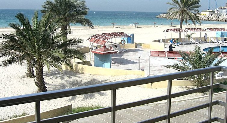 Пляж большой - песок и небольшая полоска камней при заходе. Море в июле днем просто горячее - купаться более-менее комфортно утром и вечером. Иногда волнами приносит медуз, в песке на небольшой глубине любят закапываться !КРАБЫ! - оочень бывает неприятно наступить на него. Зонтов с каждым годом становится все меньше и спрятаться от солнца все труднее) к тому же до ОАЭ видимо добрались турецко-египетские занимальщики шезлонгов с зонтами, которые пробегают по пляжу рано утром и занимают "клевые места" разными тряпочками, на которых сами потом бывает даже не появляются. В прошлые года я такого здесь не замечал.