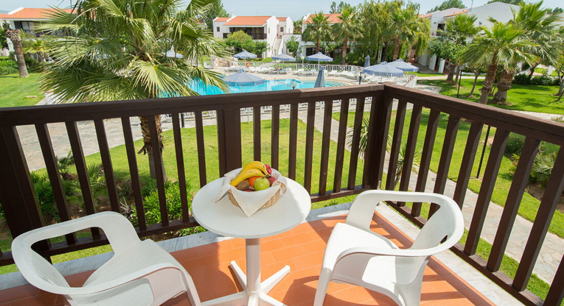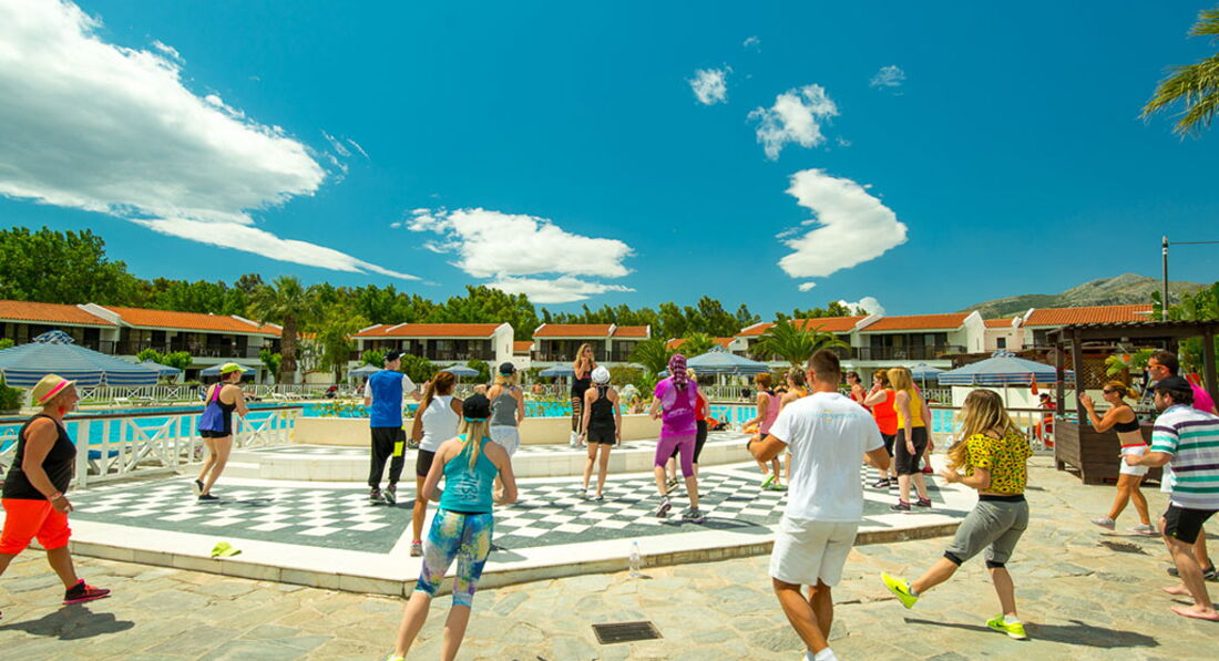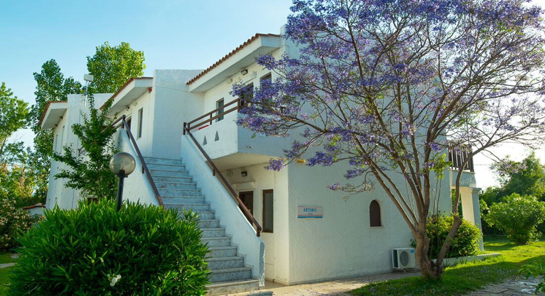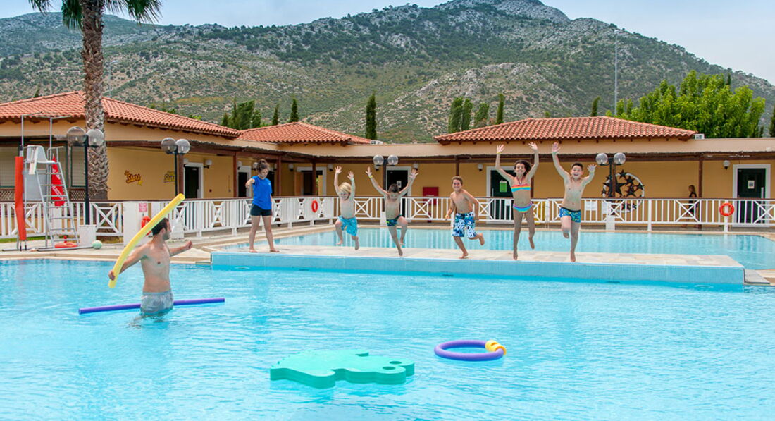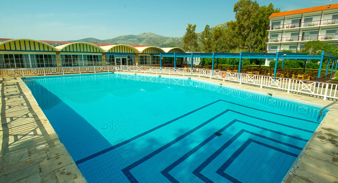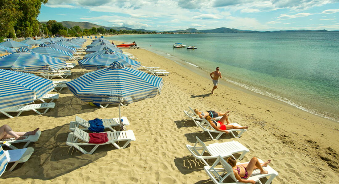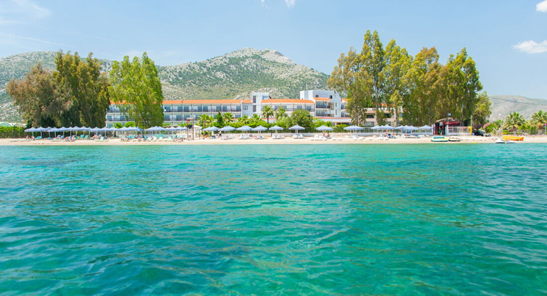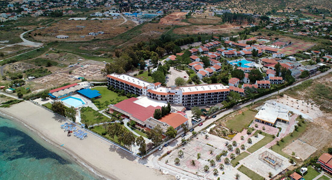 Величезна територія, традиційний архітектурний стиль, центральна чотириповерхова будівля та двоповерхові бунгало. Перша берегова лінія, піщаний пляж, басейни, ресторани та бари, тенісні корти, спорт та розважальні програми, дитячий клуб, конференц-центр, амфітеатр, обслуговування високого класу. Ідеальне місце для відпочинку із сім'єю недалеко від Афін.
