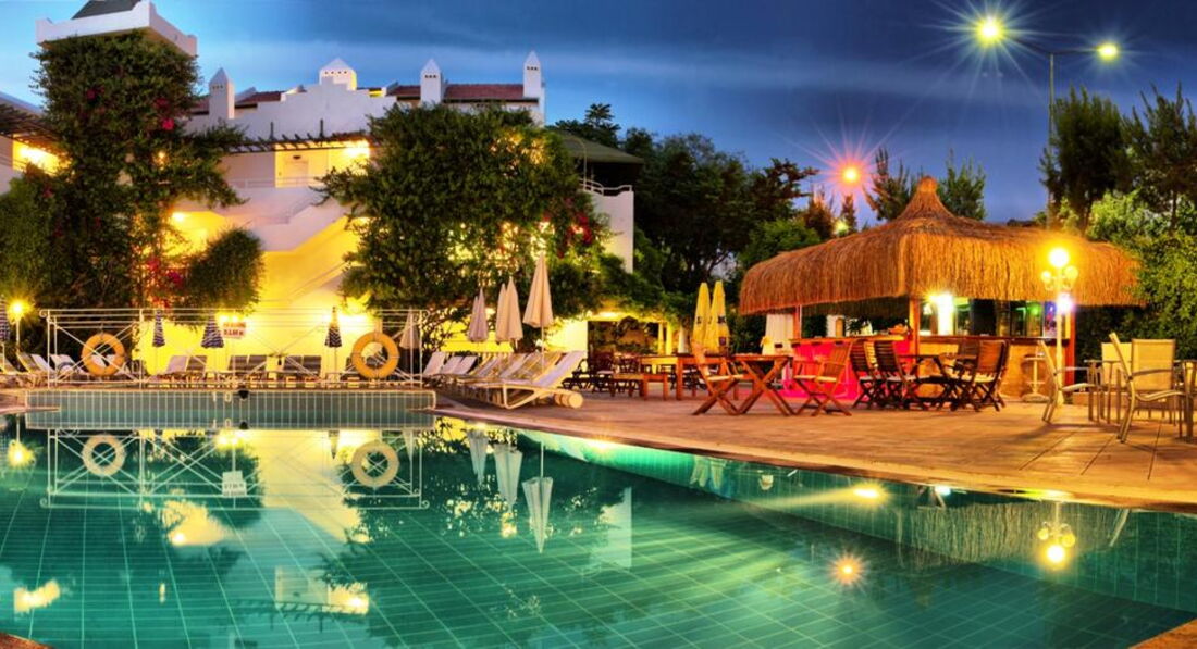 Хороший отель цена-качество, если не нужен All inclusivе. Удобно расположен. До моря пешком минуты 3-4 по прямой. Там же набережная с кафе, ресторанами. Пляж Ladies Beach - это собственно платный кусок всего пляжа. Стоит кажется 15 дол. на день. Там хороший вход в море, песок, лежаки, матрацы, зонты, бесплатный Wi-Fi, кафешки. Все чисто. Если бесплатный, то наверное, как в Анапе у нас, колхоз, довольно грязно, окурки и остатки еды. Турок много, трапезы целые устраивают прямо на пляже. Загорать на полотенцах. Если еще дальше пройти, то там уже вход в море камни. Остановка маршрутки до центра Кушадас прямо напротив отеля. Сам отельчик маленький, его территория - это собственно его внутренний двор с баром, ресторанчиком, бассейном. Чисто. Еда по разнообразию для маленькой трешки то, что надо. Самое главное, что все продукты качественные и хорошо приготовлены. Вино, кофе, пиво - все хорошего качества. Номера с мини-кухней, так что если даже не готовить, то подогреть всегда можно. Мы как-то на пляже в кафе набрали всего - картофель фри, гамбургеры, курицу, потом еще два дня в номере это разогревали на обед. По дороге на пляж-с пляжа есть супермаркет Migros - известная турецкая сеть. Тоже очень удобно. Фрукты, сладости, еда, и т.д. можно купить.