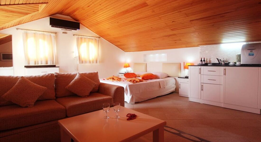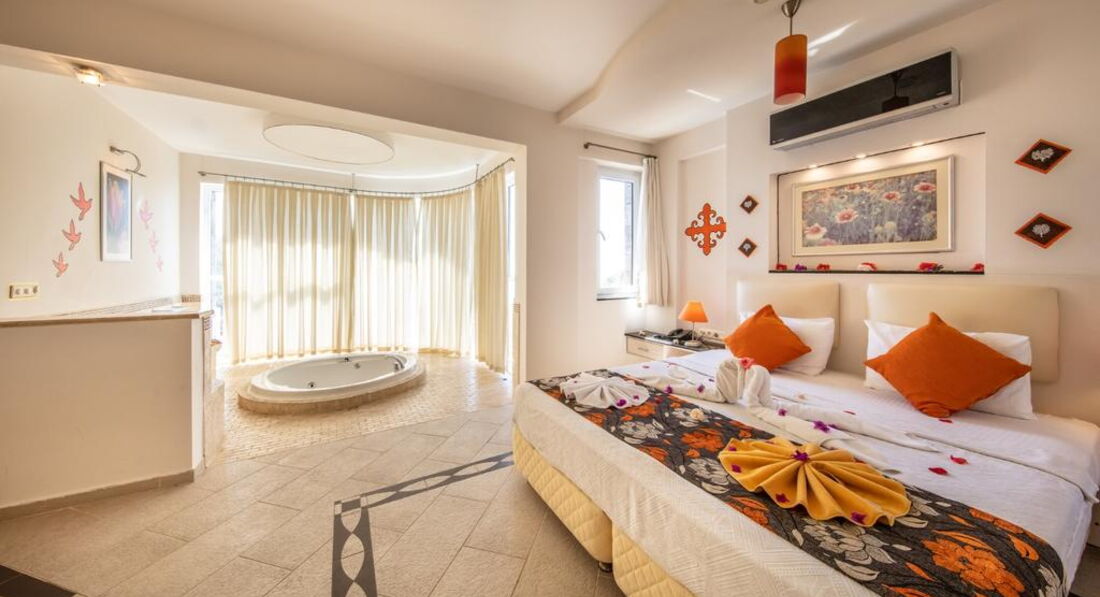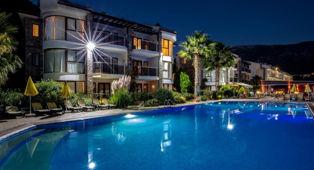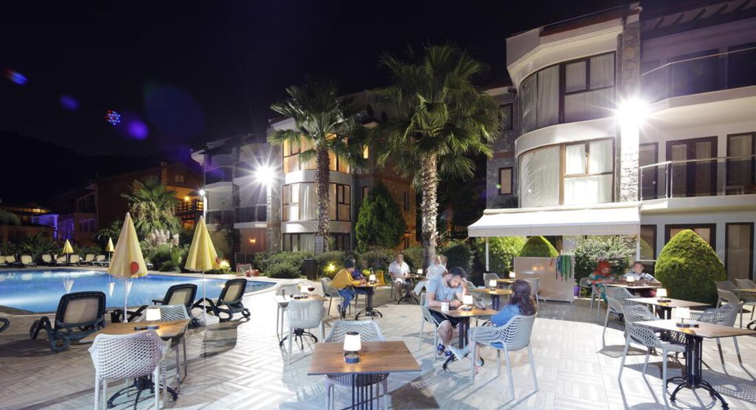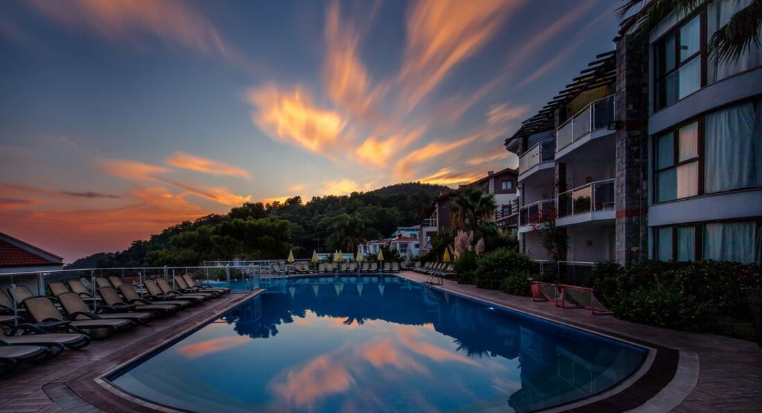 Готель Nicholas Heights Deluxe Suite Hotel & Spa з висоти дивиться на Олюденіз, розташувавшись на схилі гори, за 15 хвилин ходьби від жвавого району Хісарону, де можна знайти величезний вибір магазинів, барів і ресторанів, за 8 хвилин на таксі до Олюденіза і 12 хвилин до порту в Фетіє та за годину їзди від аеропорту Даламан. Готель збудований у 2007 році. Складається із семи 4-поверхових корпусів. Розташований на схилі пагорба з видом на піщаний Олюденіз пляж. Готель не приймає дітей віком до 15 років.