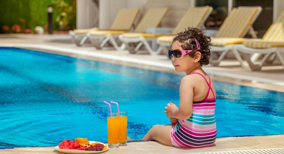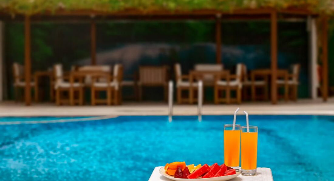 • біля басейну – парасольки, шезлонги – безкоштовно