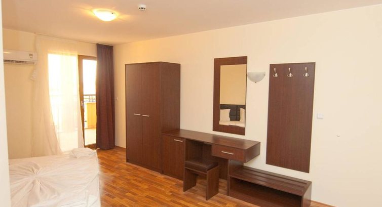 Жили в отеле в июне - июле 2014 года. Семья -2 взрослых и 2 детей. Номер - апартаменты. Состоит из 2 комнат, в одной из которых есть кухня. Ресторан в отеле не работает, завтраки надо забирать на ресепшин. Анимации нет, детской комнаты нет. На пляже свободно. Питались сами в кафешках или готовили на плите в номере. Номер оснащен электро плитой, холодильником, посудой, ТВ. Дополнительно брали сковороду и утюг на ресепшн. Жили как у себя дома. Очень здорово! Персонал дружелюбный, уборка делалась через день или через 2. Отель чистый ухоженный. Номер нам попался, как мне показалось, только что отремонтированный. Еще был запах новой медели и свежего ремонта, также о новом состоянии говорило то что не был подклчен к розетке холодильник, электроплита, телевизор, а в пультах к кондиционерам не было батреек. На полу постелен ламинат, туалет весь в кафеле. Пляж чистый, его каждый вечер чистили специальной бороной-просеевателем которую таскал маленький трактор. Лежаки и зонты на пляже платные и стоят по 8 лева каждый. Море чистое, я стоя по пояс в воде видел дно. Море мелкое, на расстояни 50 метров от берега глубина по пояс взрослому человеку. В июне море еще прохладное, но людей купается уже много.