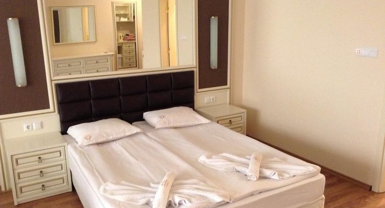 Номера чистые, новые. Все работало. Наш номер был без кухни, но несмотря на это, присутствовал холодильник, чайник, тарелки, чашки. Очень большой балкон со столом и стульями, 2 выхода на балкон (из каждой комнаты). В каждой комнате кондиционер. В спальне двуспальная кровать с замечательным матрасом и очень удобными подушками. Благодаря удачному расположению, можно любоваться морем, не вставая с кровати.Телевизор (плазма) в гостиной (показывает 2 русских канала). Интернет платный (10 Левов в день или 30 Левов на 5 дней), но скорость хорошая, ловит по всей территории отеля. Сейф на рецепции за дополнительную плату (мы не брали). Шумоизоляция достаточно хорошая. В общем коридоре мягкий ковролин, который заглушает шаги. В отеле есть лифт, но мы им не пользовались, т.к. жили на втором этаже.