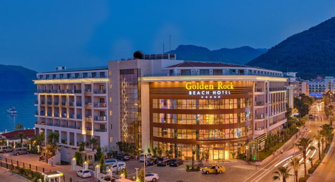 Отдыхала в Мармарисе отеле голден рок вич, отельновый 5 звезд, все включено!!!! Встретили великолепно, поселили не в 14 часов как по правилам, а через 30 минут, в шикарном номере на 6 этаже! Вид шикарный, на басссейны отеля правда другого, но очень красиво, и справа вид на море. особенно вечером все в онях!!! Наслаждалась на видами по вечерам.Все улыбаются, приветливы. Чистота в отеле идеальная, лифт работает без проблем. На рецепшене по русски не понимают, но рядом сидит русскоговорящая женщина Натали она прекрасно все рассказала и не сердилась если по приезду задавали ей вопросы. питание разнообразное, время на ужин, завтрак, обед лостаточно. Напитки все качественные! Единственный минус или пожелание чтобы убирали пляж, утром после ночи стаканы, бычки от сигарет. В целом отдых шикарный, уютно все устроено, все для тебя....Рядом с отелем останавливается автобус можно уехать в любое направление, также и вернуться к приему пищи!!!1Спасибо пероналу и пегас туристику!!!