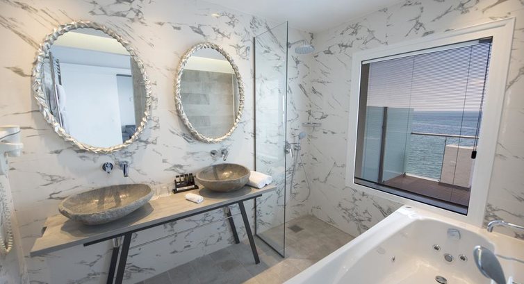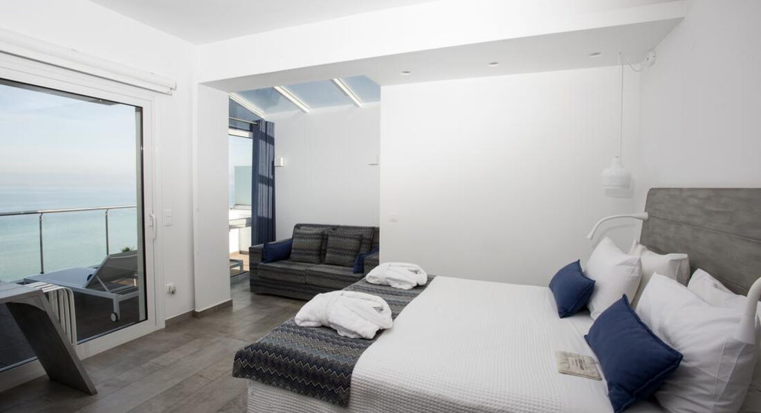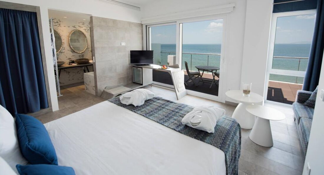 Всього 44 номери: Doubles Economy Room (25 кв.м., вкл. балкон), Family Rooms SSV - ex. Dbls & Trpls SSV (28,5 кв.м., вкл. балкон), Coco-Mat Nereid Rooms FSV (26 кв.м., вкл. балкон), Coco-Mat Suites Hephaestous FSV (34 кв.м., вкл. балкон), Coco-Mat Suites Poseidon FSV (34 кв.м., вкл. балкон), Coco-Mat Suites Aeolus FSV (25 кв.м. + 30 кв.м. веранда), Coco-Mat Suites Seagull FSV ( 105 кв.м., включаючи веранду). Типи номерів: Doubles Economy Room (25 кв.м., вкл. балкон) Двоспальне ліжко або 2 односпальні, душове, крісло. Family Room ex. Dbls & Trpls SSV Двоспальне ліжко або 2 односпальні, диван-ліжко (190х90), душ або ванна, крісло. Coco-Mat Nereid Rooms FSV (26 кв.м., вкл. балкон) Coco-Mat двоспальне ліжко (2х2) або 2 односпальні (2х1), душ, крісло. Coco-Mat Suites Hephaestous FSV (34 кв.м., вкл. балкон) Coco-Mat двоспальне ліжко (2х2) або 2 односпальні (2х1), сучасний диван-ліжко, ванна з гідромасажем, розкішний банний набір, велике дзеркало, крісло та журнальний столик. Coco-Mat Suites Poseidon FSV (34 кв.м., вкл. балкон) Coco-Mat двоспальне ліжко (2х2) або 2 односпальні (2х1), сучасний диван-ліжко, ванна з гідромасажем, розкішний банний набір, крісло та журнальний столик. Coco-Mat Suites Aeolus FSV (25 кв.м. + 30 кв.м. веранда) Веранда з панорамним видом на море, місто Салоніки та Олімп. Coco-Mat двоспальне ліжко (2х2) або 2 односпальні (2х1), сучасний диван-ліжко, ванна кімната (ванна з гідромасажем, душ, розкішний банний набір), журнальний столик. Coco-Mat Seagull Suite FSV (105 кв.м., вкл. Веранду) Веранда з панорамним видом на море, місто Салоніки та Олімп. Маленький відкритий джакузі, що підігрівається (15/03-15/11). Спальня з Coco-Mat двоспальним ліжком (2х2) або двома односпальними (2х1), ванна кімната (душова з видом на море), розкішний банний набір, гостьовий WC. Салон з 2-ма диван-ліжками, телевізор LCD Full HD 42 дюйми, сучасна їдальня (на 4 персони), обладнана кухня. За запитом: праска та прасувальна дошка, тапочки, миска для їжі та води (для тварин), палички для вух. Щоденне прибирання номерів, зміна білизни – 3 рази на тиждень. !!! Усі номери для некурців. Дозволяється курити лише на балконі. У разі порушення цього правила стягується штраф.У номері: Балкон/тераса Ванна/душ Кондиціонер Кухня в сюїті Російський канал Супутникове ТВ ТБ Телефон Фен Холодильник