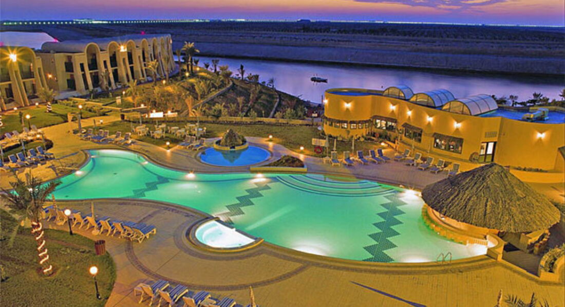 больше напомнил на загородный отель, куда сами арабы приезжают просто отдохнуть на выходные! Питание отличное, завтрак и ужин! В бассейне можно купаться круглосуточно, единственное что напрягает, что некоторое арабки купаются в одежде. Ведь специально для этого есть полностью закрытые купальные костюмы. Единственный минус, он стоит на искусственно сделанном заливе. По выходным работает клуб, съезжаются иностранцы и местные арабы потусить) музыка играет примерно до 10-11 вечера.
