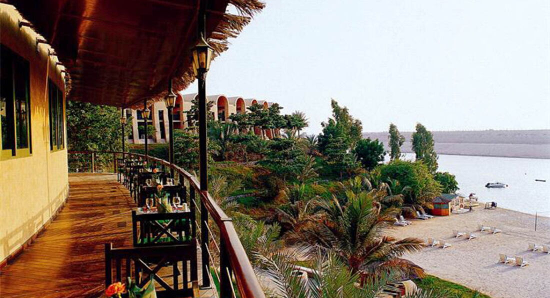 Среднего уровня 4****. Отель очень старенький. Расположен в 60 км от Дубая. 3 раза в неделю курсирует б\п шатл-бас. Состоит из основного здания и шале. Шале ( оборудованы кухней) расположены на берегу, удалены от основного здания на 7 километров, между ними курсирует шатл-бас. Отель имеет инфраструктуру и минимальный набор услуг. За территорию выйти некуда. Для любителей дайвинга отель подходит как нельзя лучше.