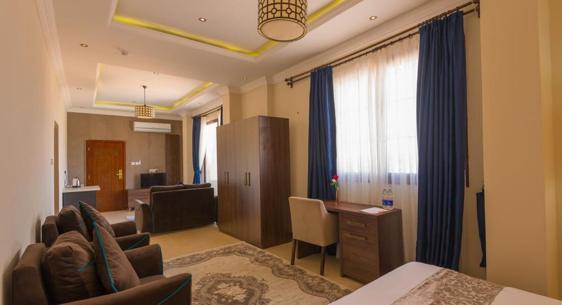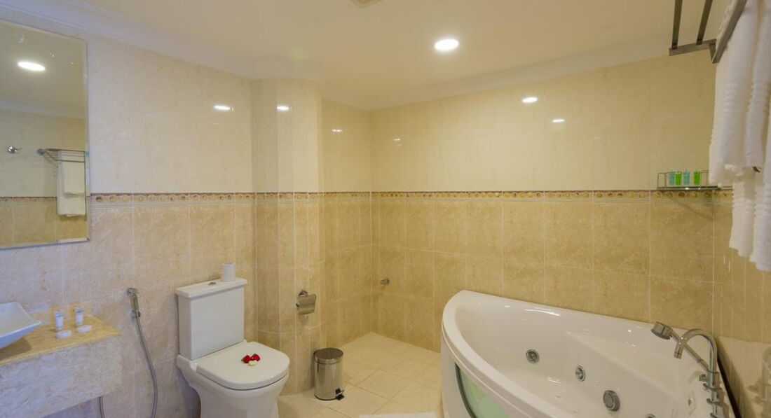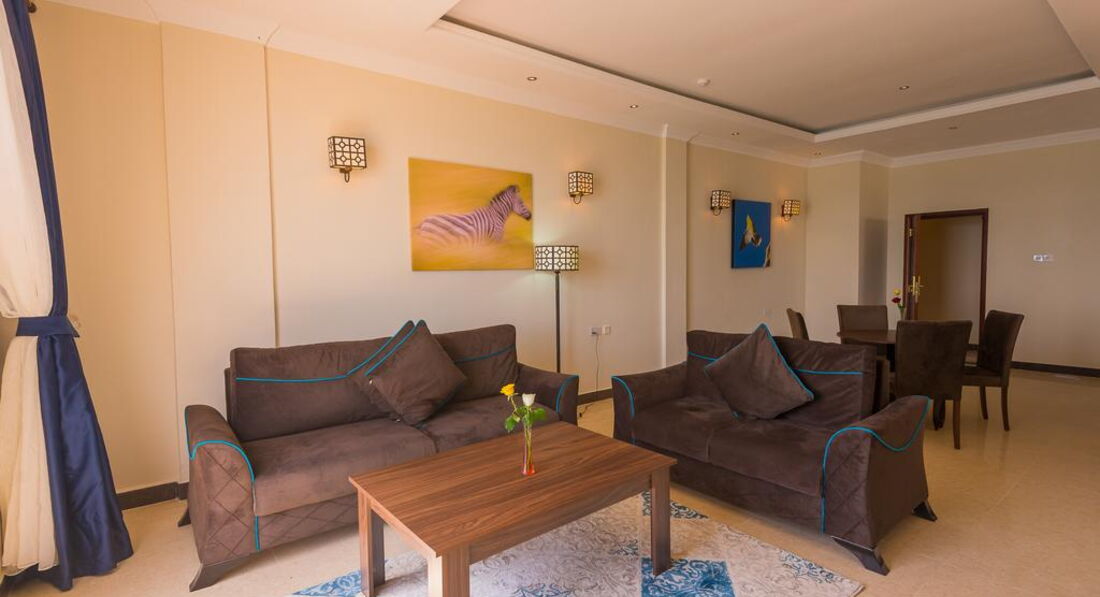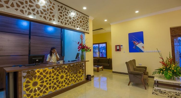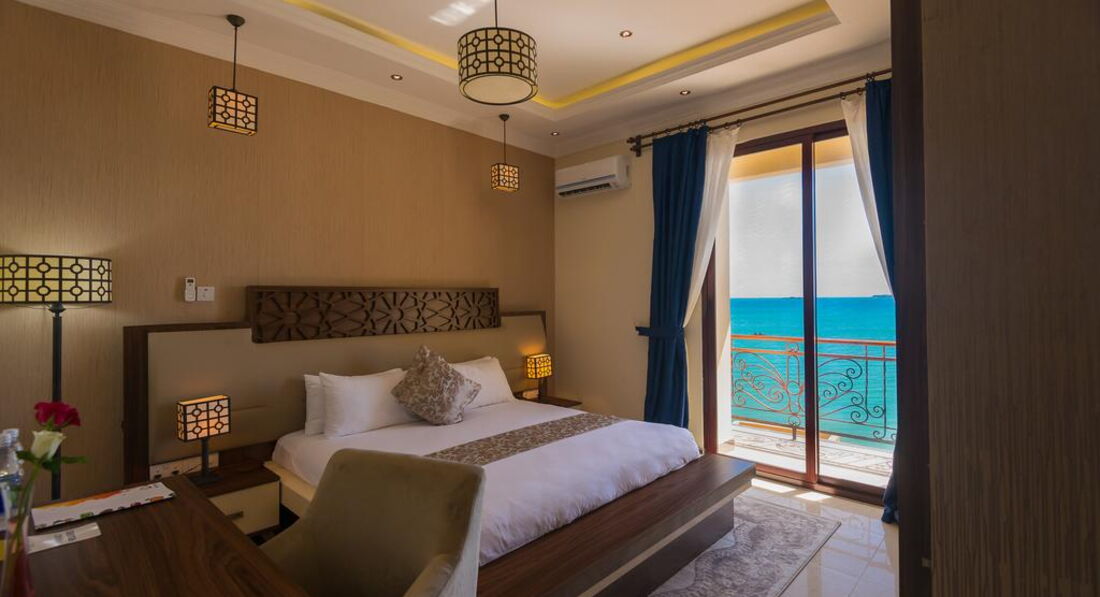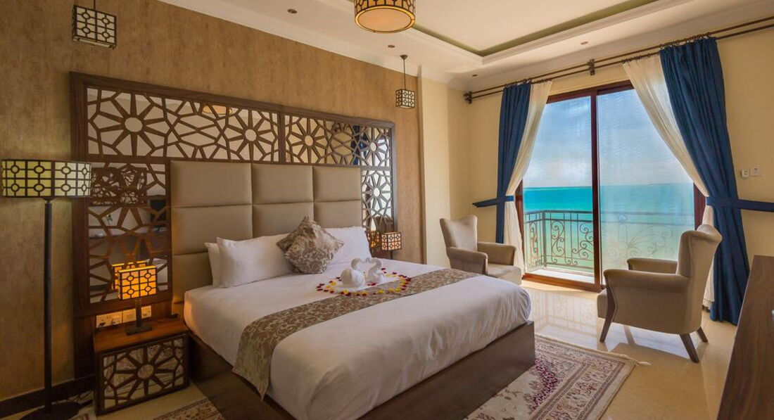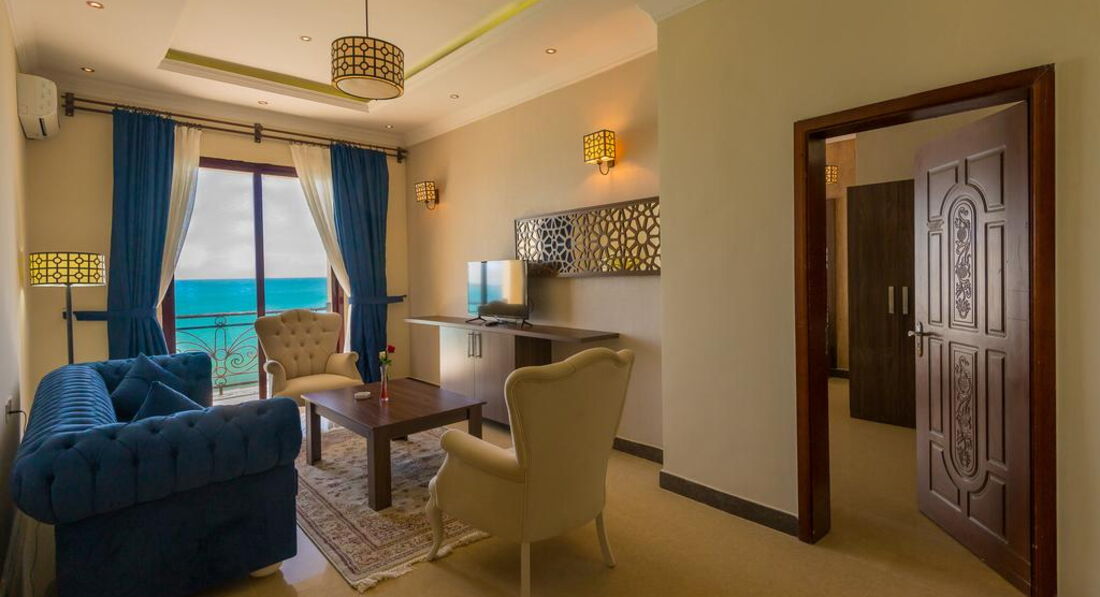 • тераса/балкон • кондиціонер • Wi-Fi • санвузол • душ • косметичні приналежності • рушники • набір для кави та чаю • міні-бар • TV: супутникове • телефон • сейф у номері • фен • праска, прасувальна дошка • письмовий стіл • спальня • вітальня зона Територія та послуги: • wi-fi • wi-fi у лобі • tv-room • бібліотека • кімната для зберігання багажу • консьєрж • конференц зал • ліфт • оплата за кредитними картками • паркування • пральня • сейф на reception • сувенірний магазин • факс/ксерокс/принтер • відкритий басейн • екскурсійні програми Розваги та спорт: • водні види спорту • дайвінг центр • рибна ловля • снорклінг • тренажерний зал • йога Для дітей: • ігрова кімната • няня Живлення: • ресторан - Dhow Restauran • бар - Ali Baba Lounge Пляж: Піщаний пляж