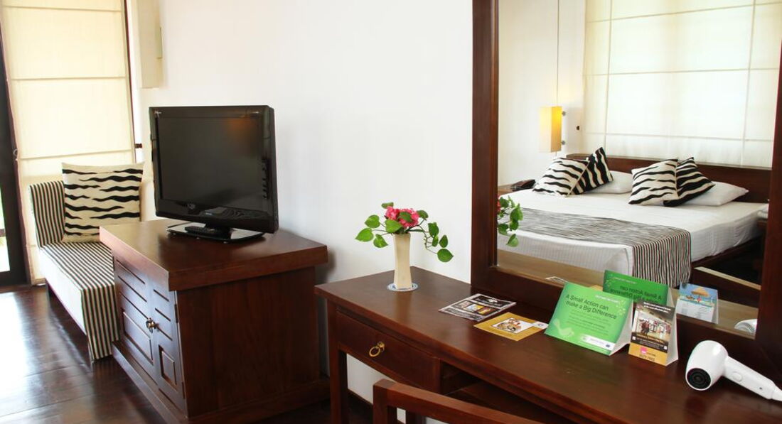 64 Standard (28 м2, макс. 3 або 2+2 чол.). Однокімнатні номери розташовані в головній будівлі. Вид на океан.