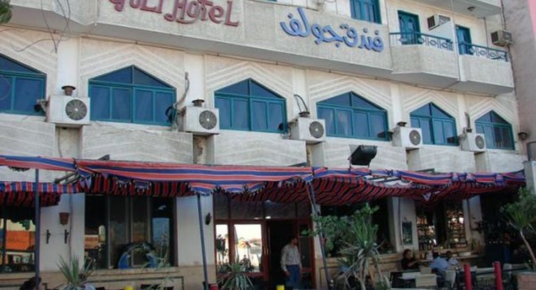 В самой гостинице все очень скромно. Прислуга приветливая, не разговорчивая особо. Номера замусоленные, но все есть: телевизор с российским каналом, холодильник-зверь, шкафчик-трюмо, туалет. В туалете в нише душ, вода течет прямо на пол, если течет, а то может и не быть. Во время нашего прибывания в Гольфе шла во всю стройка. Строители попадались днем в лифте, но вели себя прилично. На три дня была какая-то \"засада\" и заехало очень! много арабов с женщинами. В \"столовке\" была очередь, все почернело от изобилия черных \"нарядов\". Женщины очень пугливые, если в лифте столкнешся сам испугаешься, а она или они еще больше. Вот такой он Гольф! Мои впечатления были очень красочные, т.к. я была в Египте первый раз. Хотя в гостинице мы были меньше половины тура, т.к. ездили на экскурсии, но воспоминания остались такие вот. Вообще, если цена устраивает и гостиница нужна постольку по скольку, то пережить ее можно, но это не для \"слабонервных\". Питание нормальное, с голоду умереть не дадут. Вид из окна двух вариантов или на улицу (Содом с Гаморой), или во двор на интернет-кафе и стройку-помойку, мы выбрали последнее, т.к. хотели ночью спать. Балкона в нашем номере не было, окно откурыть летом, просто, не реально. Кандиционер работал исправно, но звуки издавал, подобные КАМАЗу на полном ходу. Проживание в Гольфе дает возможность в полной мере ощутить весь местный колорит, за три дня вы познакомитесь со всеми продавцами и офоциантами на улице, вам будут приносить все, что вы закажете в первые два-три дня без напоминаний, намажут вас в каждой лавке сандалом, продадут (не сразу, а на третий-четвертый день) по дешевке кучу сувениров, папирусов, пряностей, украшений и все будет, заметте, ручной работы и только для вас! В наш приезд хозяин отеля собственноручно отвез нас в первый вечер в Дюти-Фри, с уговором на один паспорт отаварится, конечно. Нам было интересно пообщаться и посмотреть на город, мы согласились. На один паспорт мы взяли две бутылки Египетского вина, а на второй наш \"хозяин\" скупил пол-магазина и был счастлив! Вечерами мы виделись с \"хозяином\" в кафушке под отелем, всегда были отмечены знаками внимания.