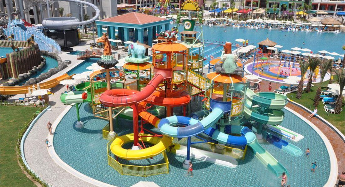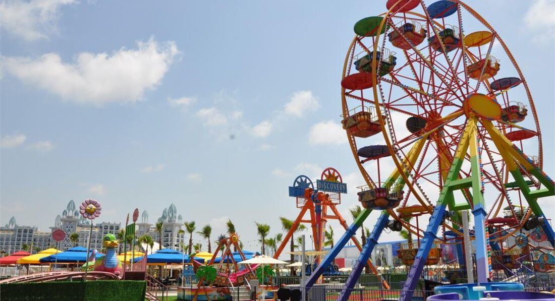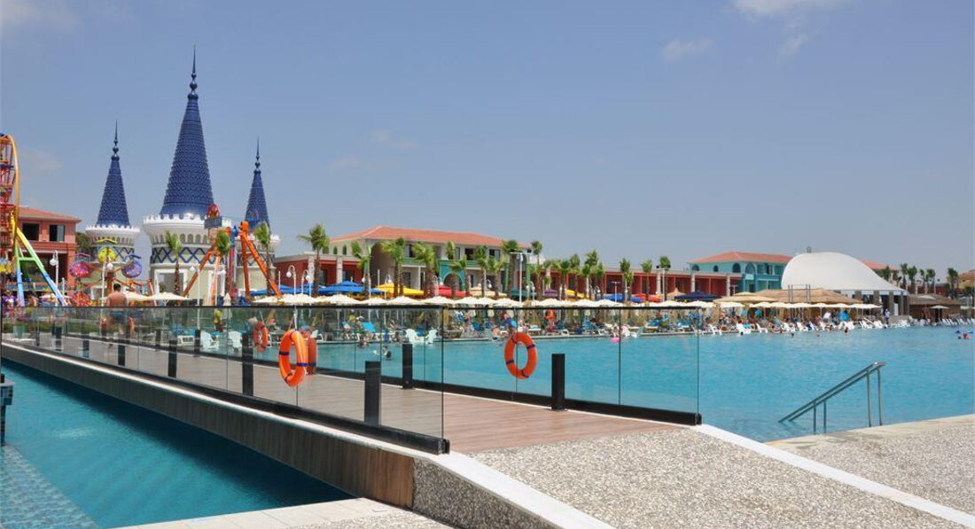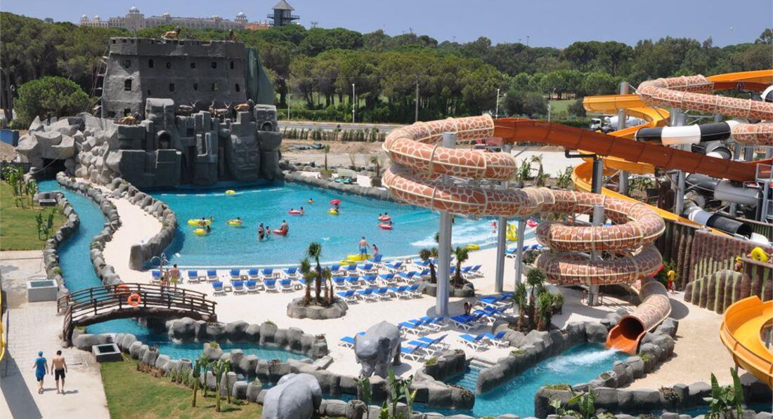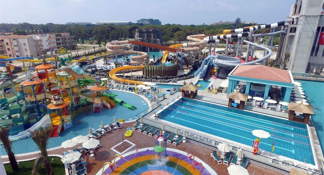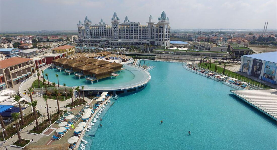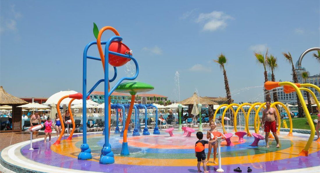 Територія та послуги: • основний відкритий басейн, 3100 кв.м • басейн Мальдіви, 3000 кв.м • басейн із штучною хвилею, 2 100 кв.м • анімаційний басейн по 117 кв. • басейн на території номерів фемілі сьют, 480 кв.м • 2 критих басейни, 190 та 510 кв.м. з підігрівом (залежно від погодних умов) • басейн лінива річка, 860 кв.м • напіволімпійський басейн, 325 кв. • основний ресторан • 3 ресторани A'la Carte (за попередньою резервацією - платно) • 9 барів • 24 конференц-зали, на 55-3111 чол. • обмін валюти • Wi-Fi (безкоштовно, на всій території готелю) • оренда автомобіля • медичні послуги • пральня, хімчистка • послуги фотографа Розваги та спорт: • аквапарк • кінотеатр (безкоштовно) • луна-парк (платно) • анімація російською мовою • турецька лазня, сауна, парна • соляна кімната • джакузі • фітнес центр • дискотека • дартс • настільний теніс • аеробіка • SPA-центр • масаж • салон краси, перукарня • більярд • боулінг • комп'ютерні ігри • всі види водного спорту Для дітей: • ліжечко, за запитом • дитяча анімація російською мовою • міні-диско • міні-клуб (4-12 років) • тінейджер-клуб (13-17 років) • дитячий майданчик, ігрова кімната • 2 відкриті дитячі басейни, 70 і 775 кв.м (один з них з підігрівом) • критий дитячий басейн, 20 кв. • дитяче меню (вечеря) • у ресторані надаються дитячі стільці • няня (платно, по резервації) • дитячий візок (безкоштовно, по резервації) • дитячий горщик (безкоштовно) Живлення: • UAI - Ультра все включено У концепцію входить: сніданок, пізній сніданок, обід та вечеря - шведський стіл, свіжий апельсиновий сік на сніданок, закуски-солодкості та морозиво у певні години, нічний суп, дієтична та вегетаріанська кухня, цілодобово (лобі-бар) деякі імпортні та місцеві алкогольні та безалкогольні напої. Обслуговування в номері, напої, що не входять до концепції – платно. Пляж: Власний піщаний пляж знаходиться за 1,7 км від готелю. Курсує шатл до пляжу, кілька разів на день, безкоштовно. Протяжність пляжу становить 80 м. Шезлонги, парасольки, матраци, пляжні рушники (депозит) – безкоштовно. Захід у море - пологий, пісок. Душ, кабіни для перевдягання, рятувальник, бар на пляжі. До оплати приймаються кредитні картки: Visa, MasterCard.
