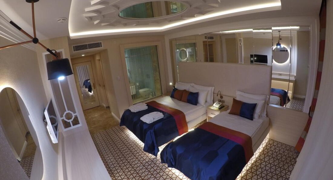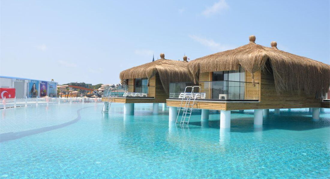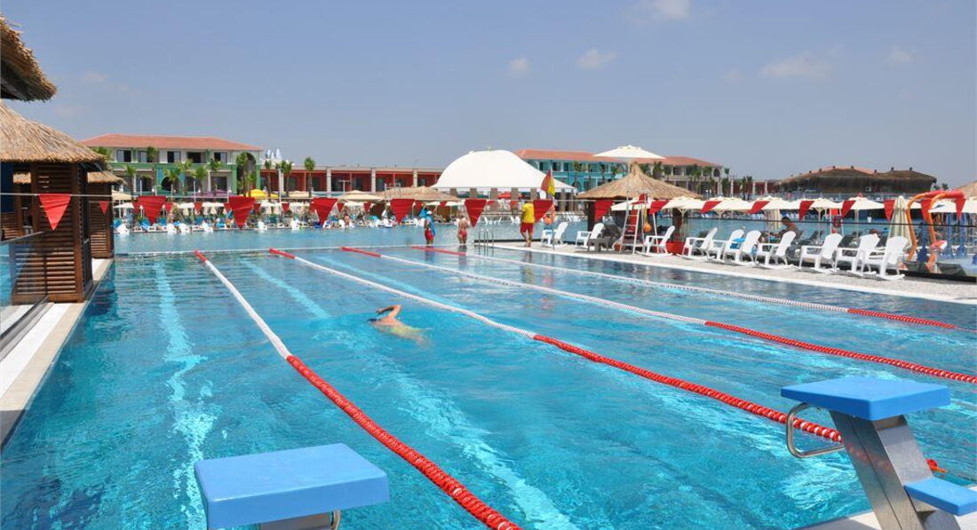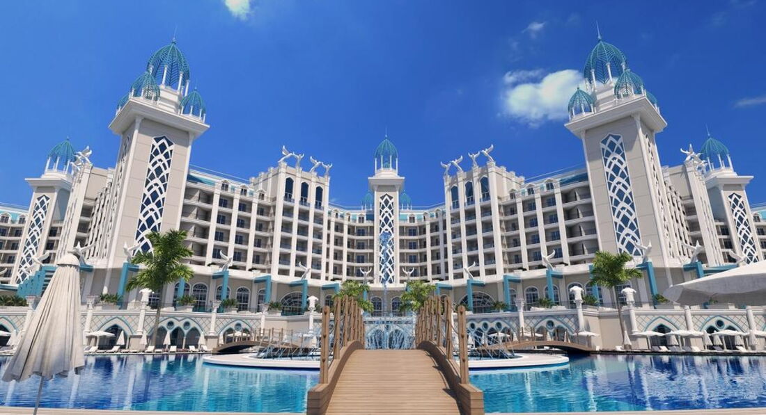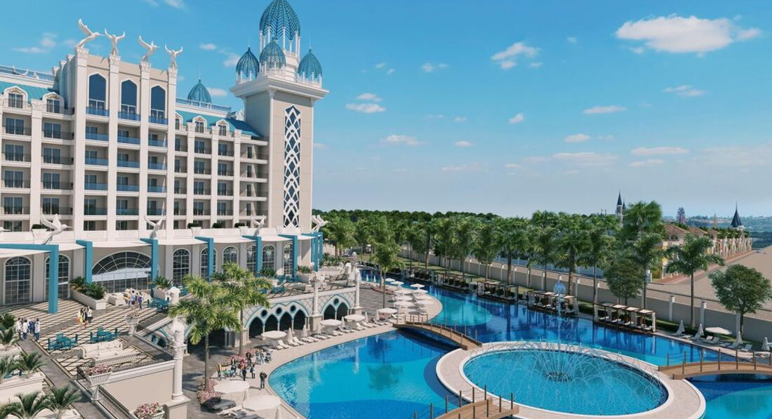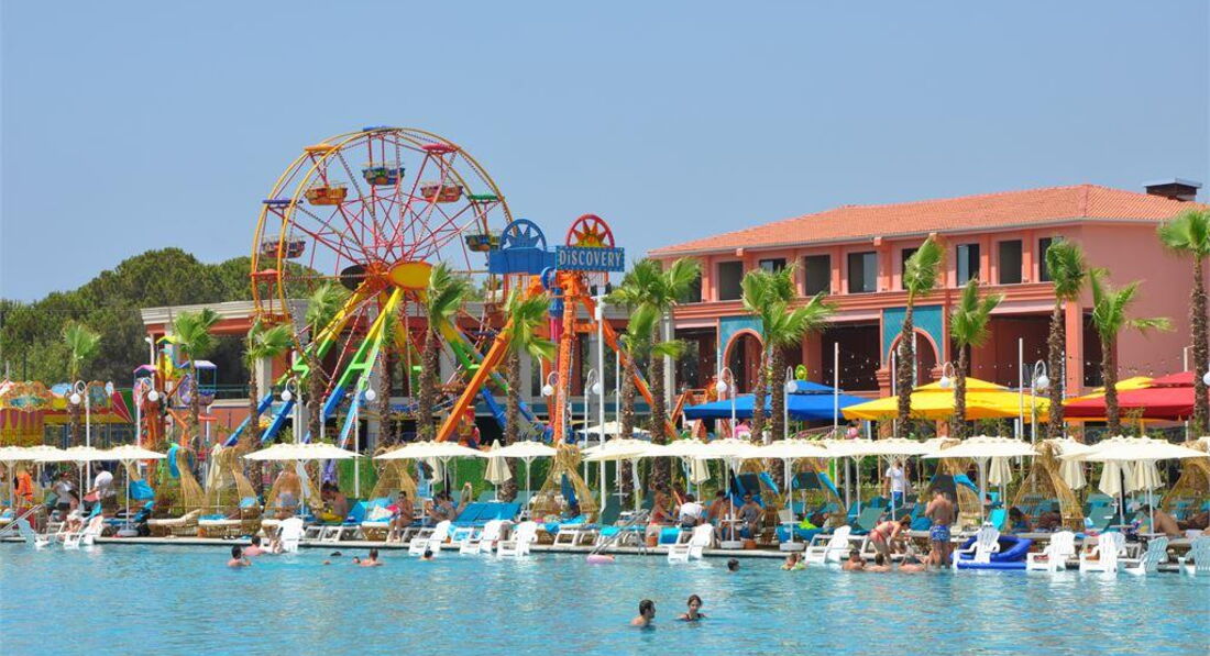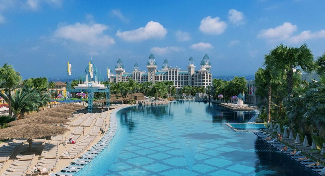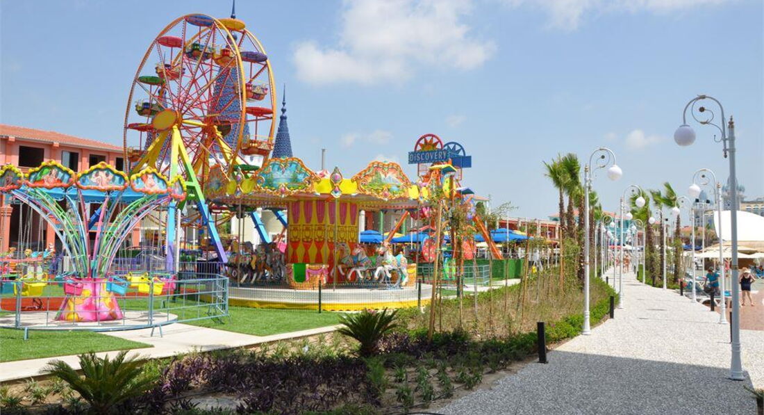 Територія та послуги: • основний відкритий басейн, 3100 кв.м • басейн Мальдіви, 3000 кв.м • басейн із штучною хвилею, 2 100 кв.м • анімаційний басейн по 117 кв. • басейн на території номерів фемілі сьют, 480 кв.м • 2 критих басейни, 190 та 510 кв.м. з підігрівом (залежно від погодних умов) • басейн лінива річка, 860 кв.м • напіволімпійський басейн, 325 кв. • основний ресторан • 3 ресторани A'la Carte (за попередньою резервацією - платно) • 9 барів • 24 конференц-зали, на 55-3111 чол. • обмін валюти • Wi-Fi (безкоштовно, на всій території готелю) • оренда автомобіля • медичні послуги • пральня, хімчистка • послуги фотографа Розваги та спорт: • аквапарк • кінотеатр (безкоштовно) • луна-парк (платно) • анімація російською мовою • турецька лазня, сауна, парна • соляна кімната • джакузі • фітнес центр • дискотека • дартс • настільний теніс • аеробіка • SPA-центр • масаж • салон краси, перукарня • більярд • боулінг • комп'ютерні ігри • всі види водного спорту Для дітей: • ліжечко, за запитом • дитяча анімація російською мовою • міні-диско • міні-клуб (4-12 років) • тінейджер-клуб (13-17 років) • дитячий майданчик, ігрова кімната • 2 відкриті дитячі басейни, 70 і 775 кв.м (один з них з підігрівом) • критий дитячий басейн, 20 кв. • дитяче меню (вечеря) • у ресторані надаються дитячі стільці • няня (платно, по резервації) • дитячий візок (безкоштовно, по резервації) • дитячий горщик (безкоштовно) Живлення: • UAI - Ультра все включено У концепцію входить: сніданок, пізній сніданок, обід та вечеря - шведський стіл, свіжий апельсиновий сік на сніданок, закуски-солодкості та морозиво у певні години, нічний суп, дієтична та вегетаріанська кухня, цілодобово (лобі-бар) деякі імпортні та місцеві алкогольні та безалкогольні напої. Обслуговування в номері, напої, що не входять до концепції – платно. Пляж: Власний піщаний пляж знаходиться за 1,7 км від готелю. Курсує шатл до пляжу, кілька разів на день, безкоштовно. Протяжність пляжу становить 80 м. Шезлонги, парасольки, матраци, пляжні рушники (депозит) – безкоштовно. Захід у море - пологий, пісок. Душ, кабіни для перевдягання, рятувальник, бар на пляжі. До оплати приймаються кредитні картки: Visa, MasterCard.
