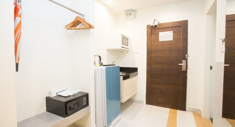 Немного о номере: в нем было 2 односпальные кровати (мы их соединили между собой), 2 тумбочки, 2 стула, столик, большой стол, телевизор, стены покрашены водоэмульсионкой, на полу кафель, небольшой балкон. Окна выходили во внутренний двор отеля. С улицы звукоизоляция окна хорошая, но со стороны коридора ужасная, круглые сутки слышно все. Wi-Fi есть, качество оставляет желать лучшего, постоянно вылетал, если есть необходимость наличия круглосуточного интернета по удаленной работе - вам не в этот отель однозначно. Уборка номера хромает, пол помыли всего 1 раз, а так только веником подметали ежедневно. Влажная уборка поверхностей также была всего 1 раз. Белье меняли 1 раз в 3 дня. Есть недорогой минибар со снеками, пивом и разной газировкой, мы пользовались им в счет депозита 500 батт, которые оставили при въезде. Кондиционер старый, регулируется отвратительно, либо очень холодно, либо очень сыро, ночью замерзли ужасно, пришлось завешивать его полотенцем, чтобы немного "загасить" струю холодного воздуха.
