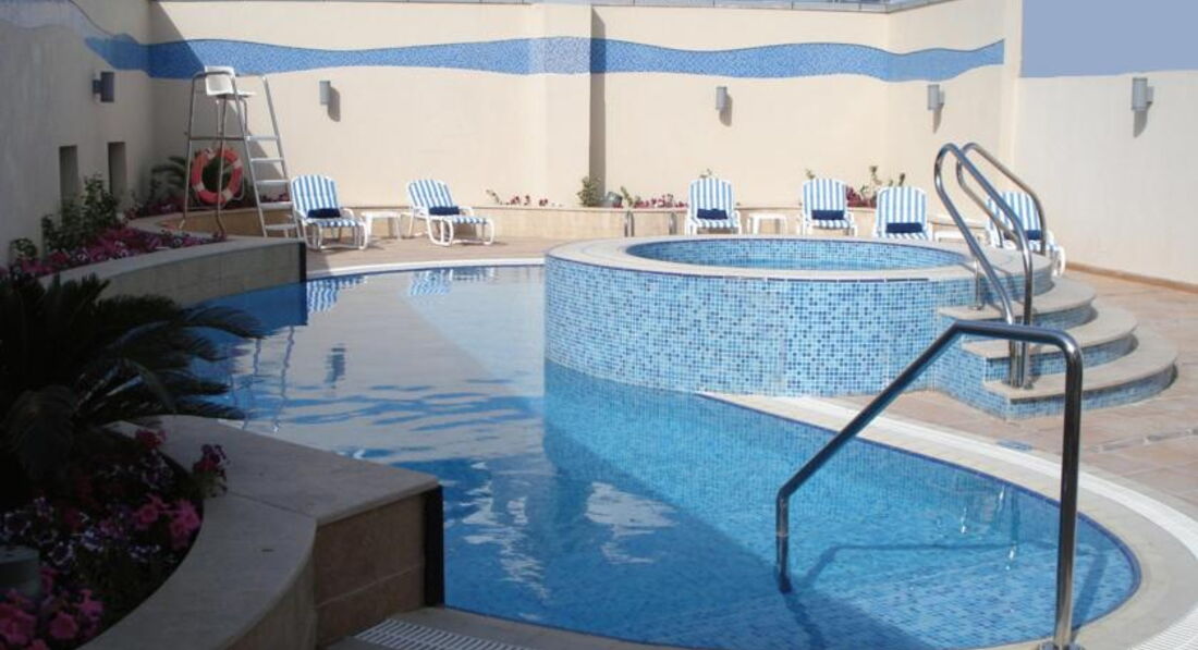 Фитнес зал мужской и женский (+2 разные сауны в каждом), как и бассейны разделённые. Бассейн небольшой. Всего 4 лежака, но я не видела ни разу, что бы были заняты все 4. Полотенца для бассейна и зала выдают.