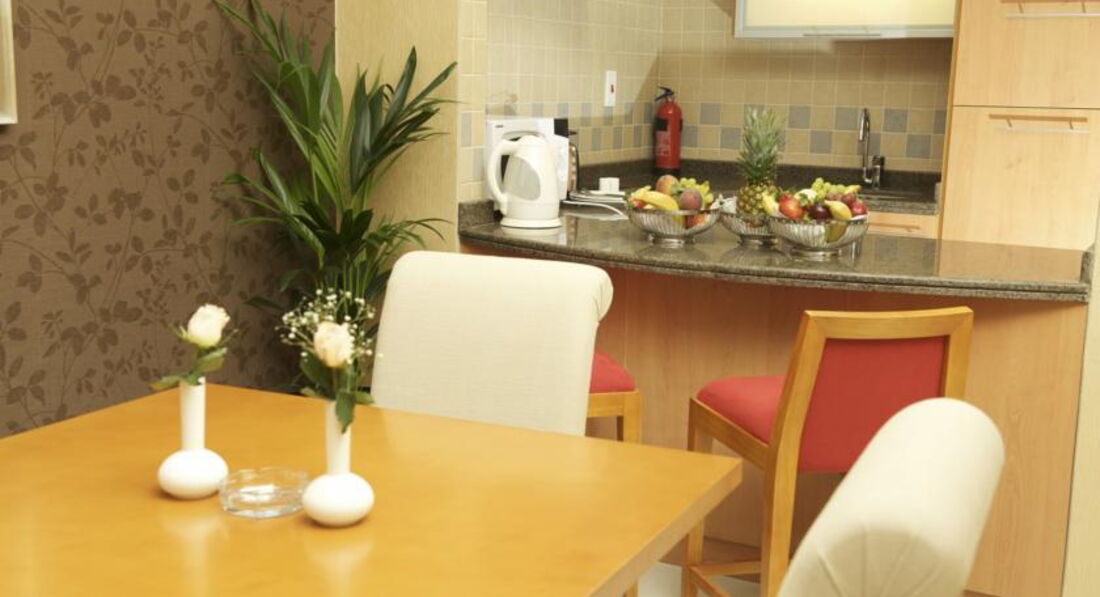 Отель новенький, все номера считаются Бизнес-класса, в каждом кухня, стиральная машинка, гладильная доска. Номер дали на 13 этаже (всего 15), отличный вид на соседние небоскребы - отели. Мини бар присутствует, но так как у них сухой закон, там только кола, спрайт, орешки. Забегая вперед скажу, что алкоголь можно купить только в барах отелей, но не в Бэлле, так как он позиционируется как отель мусульманский. Никто, конечно за шорты на завтраке ругать не будет, но косой взгляд обеспечен. Даже бассейнов на крыше 2 - мужской и женский, в разные стороны от лифта) соответственно и тренажерные залы разные).