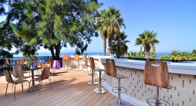 Бари та ресторани: головний ресторан – міжнародна кухня, на 750 чол., критий, з терасою; бар на пляжі (10:00-18:00), бар біля басейну (10:00-18:00), лобі-бар (17:00-06:00), диско-бар (23:00-01:00) ), бар "Umbrella" (17:00-01:00), снек-бар (11:00-18:00), бар "Blue Cornerda" (20:00-23:00) - безкоштовно. 3 ресторани А"la carte: турецький, італійський, рибний - відвідування 1 ресторану за час проживання безкоштовно.