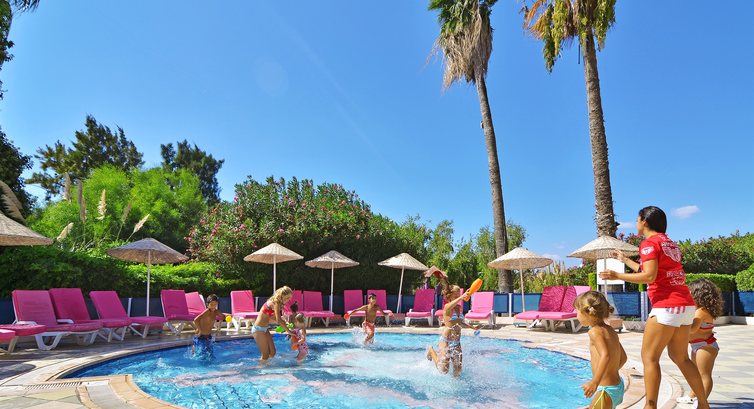 Анимация в отеле в основном на турецком языке. В бассейне водное поло, танцы, игры, на пляже играют в бочу и проводят зарядку.
