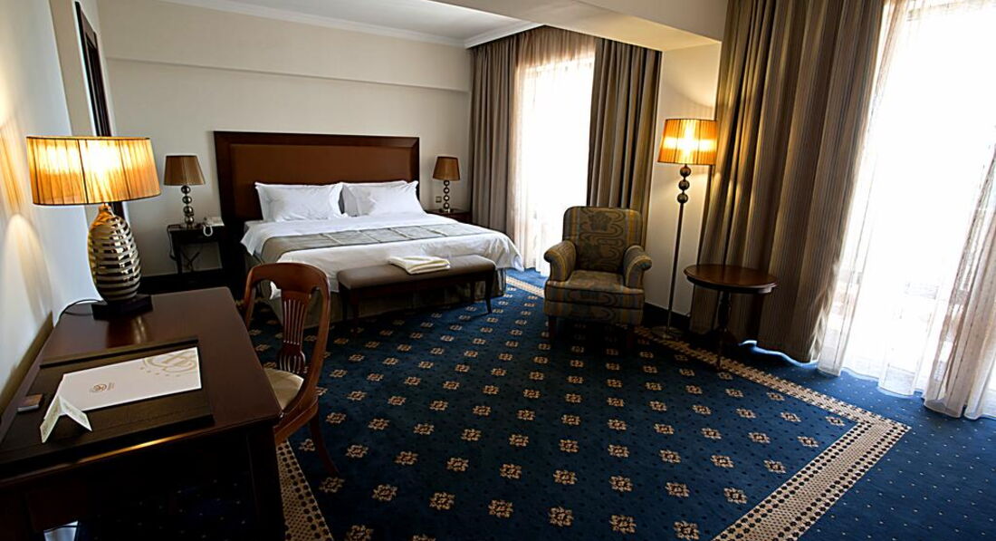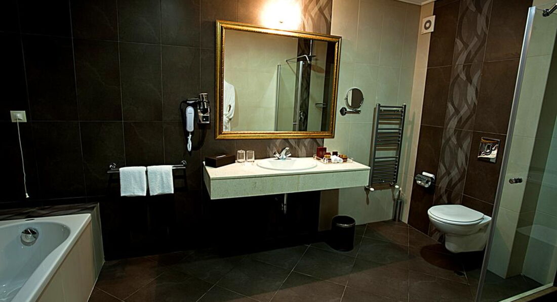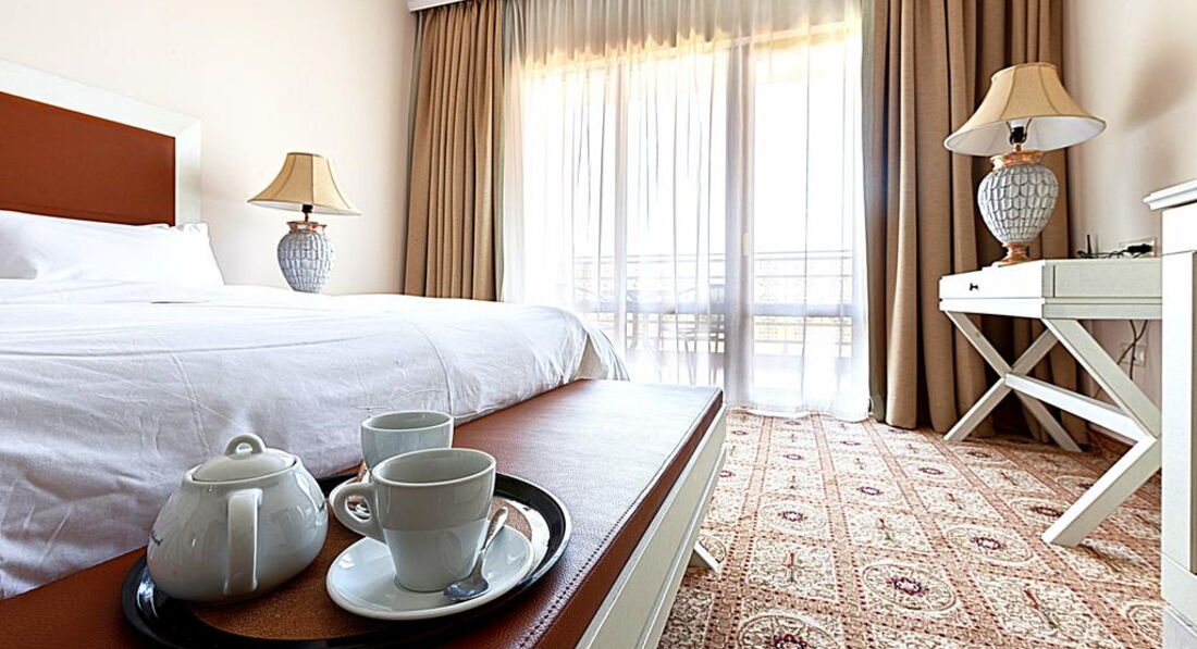 Номер чистый,уютный,просторный,с видом на море.Очень большая кровать со стильными светильниками,все предусмотрено,чтобы не вставать все выключатели прям около кровати,стоит всего лишь протянуть руку..и ты погасишь свет где захочешь)Плазменный телевизор с русскими каналами.В номере убирались каждый день и очень качественно,естественно нужно быть благодарными за уборку(оставить немного евро).В ванной комнате,есть ванна,душ,туалет,и каждый день чистые полотенца.Для лица,для рук,для тела и для ног.Гель для душа есть,шампунь,кондиционер,фен.
