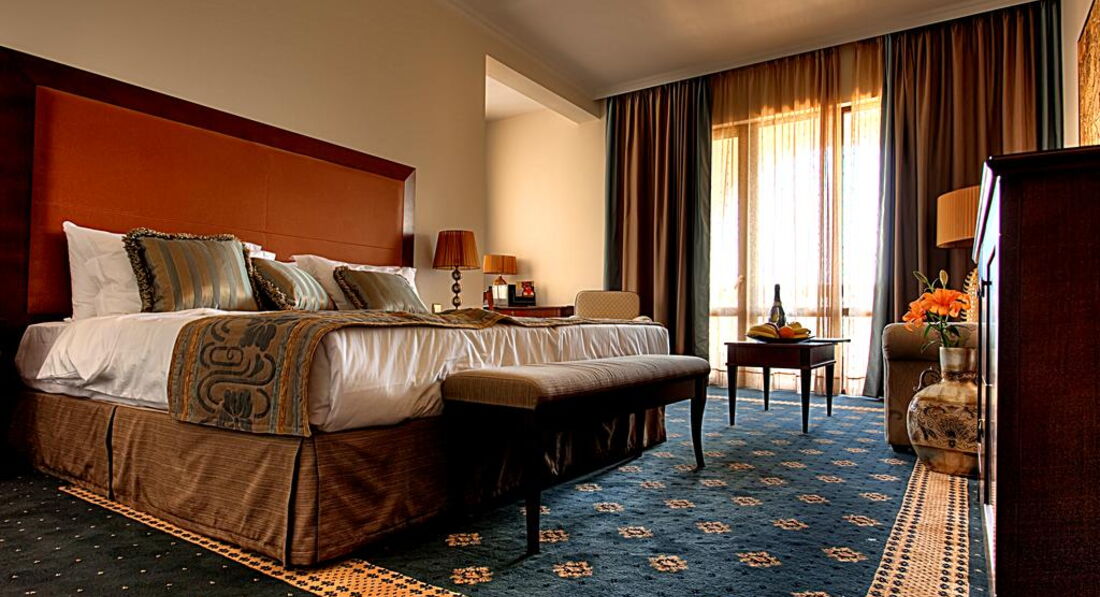 Отдыхали с 18 августа по 1 сентября 2013г. В Болгарии 1ый раз, до этого были в Турции, Испании Греции. Неожиданно, но понравилось очень . Все продумано! Соотношение цена/качество - идеальное, полный комфорт! Сервис на высоте. Номер у нас был повышенной комфортности с видом на море: площадь 55 метров, три огромных окна от пола, большая терраса 16 метров с прекрасным видом на море, здесь можно отметить единственный недостаток, если смотреть вправо - видны 2 портовых крана (смотрели влево ). Если есть возможность, то лучше брать такой номер. Стоит он дороже обычных, но вы не пожалеете – стандартные номера бывают очень разные – с одним или двумя окнами, так что как повезет. Кровать просто огромная. Постельное бельё меняют раз в три дня, полтенца каждый день, халаты раз в неделю. Номер убирали ежедневно. В номере есть сейф, два банных халата, две пары тапочек, набор мини шампуней, гелей для душа, фен, гладильная доска с утюгом и всё необходимое для чая (чашки-ложки, стананы-бокалы, кипятильник, пакетики с чаем и растворимым кофе). Есть минибар – но цены в нем по прейскуранту (для примера 500мл воды – 4 лева).