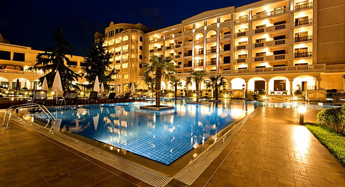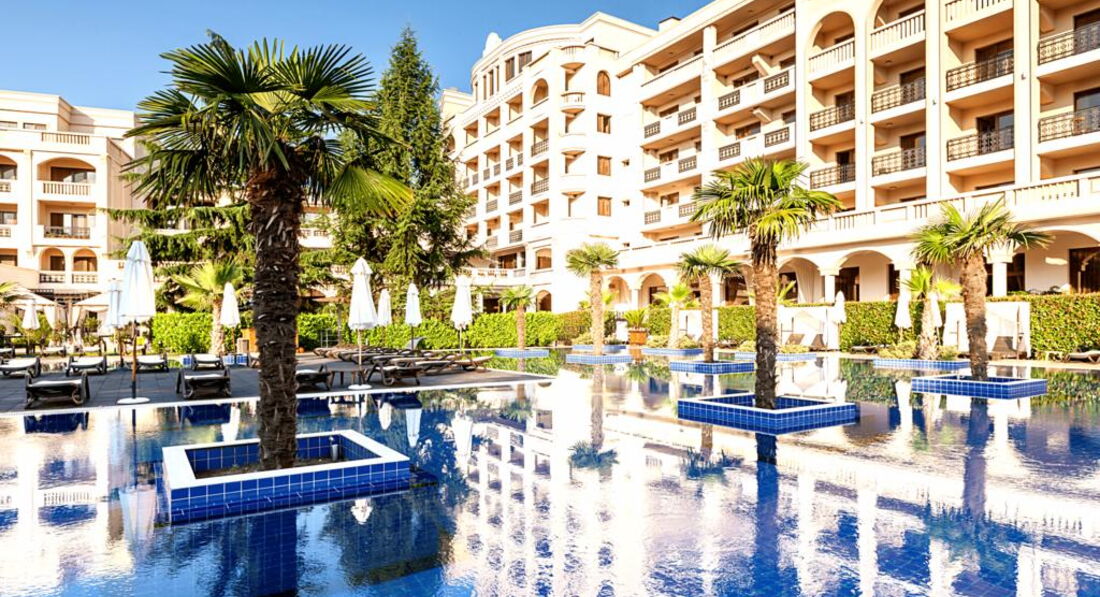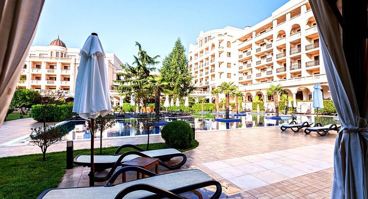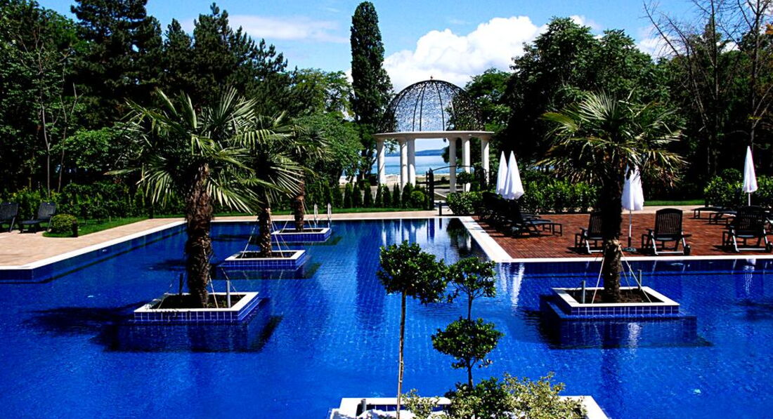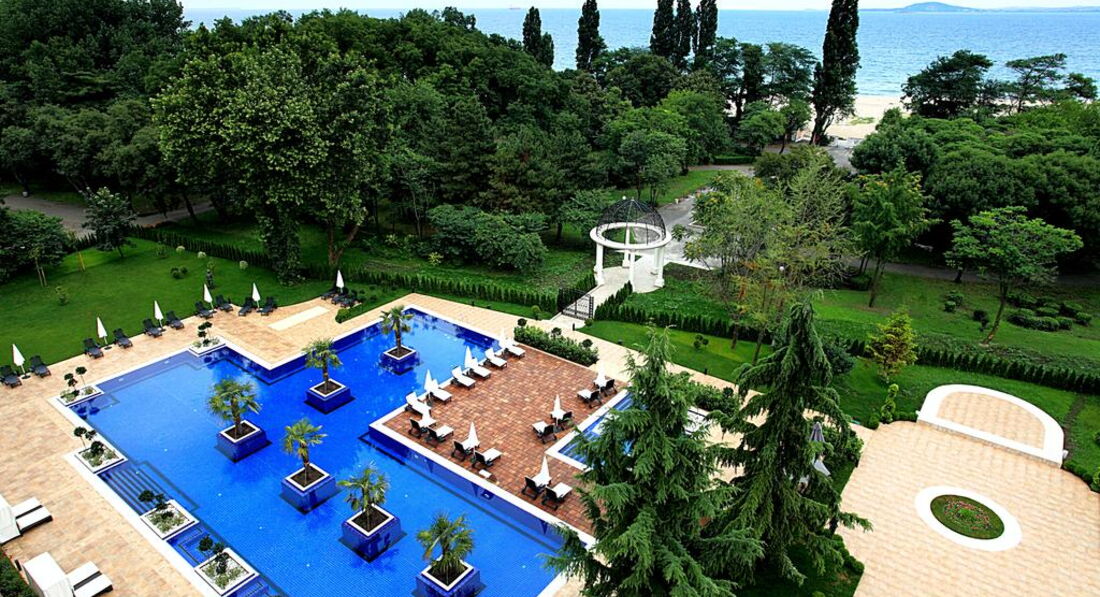 Отель большой,от аэропорта 10 минут с заездами.Территория парк огромная,красивая, зеленая, цветущая. Питание шикарное.Про питание у нас нареканий не было – все абсолютно устраивало. Острой еды там немного, исключение наверное пятница – день болгарская кухни.Ходила в спа, процедура увлажнения на основе болгарская роза – сначала небольшой массаж для расслабления, потом отшелушивают кожу. Расслабляющая процедура. Многие рекомендуют брать процедуру для двоих – название не помню, но всем нравится – наши друзья были, остались довольны.