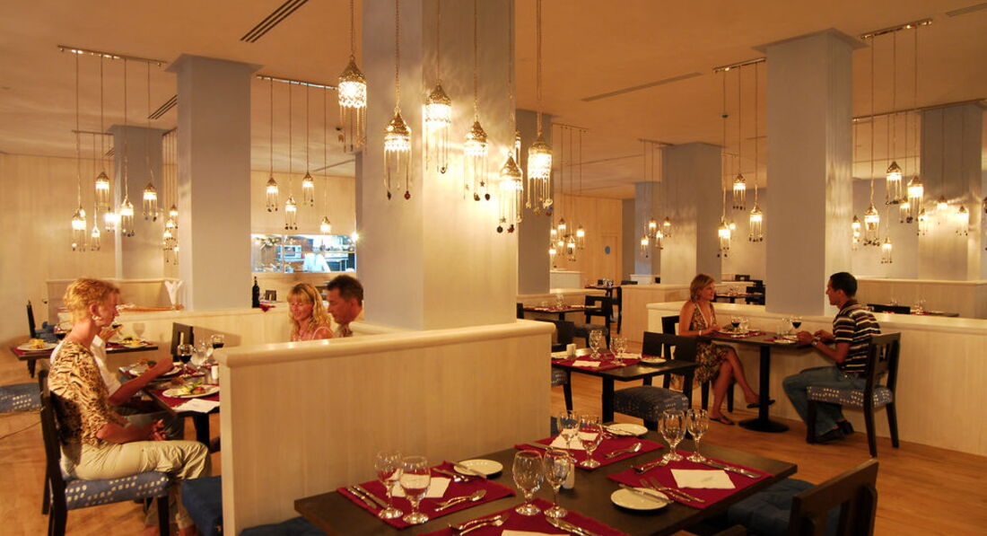 • 8 ресторанів (ресторан Sharm з приємною атмосферою, меню страви міжнародної кухні, ресторан Olive з італійською кухнею, ресторан Fusion з легкою і вегетаріанською кухнею, ресторан Tapas з національною кухнею, карибський ресторан Beach club);