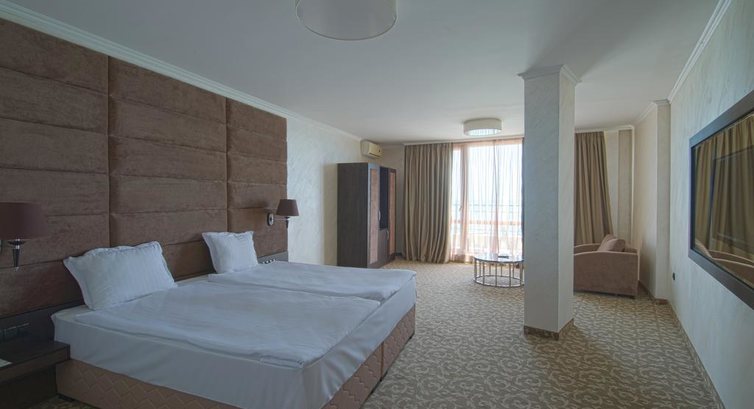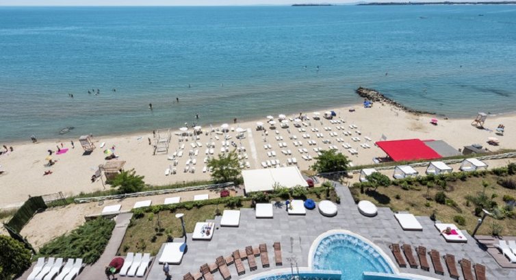 шведський стіл - сніданок, обід, вечеря -show cook тематичні вечори. післяобідній снек болгарські алкогольні та безалкогольні напої Пляж: піщаний пляж вхід у море: піщаний муніципальний пляж парасольки: платно шезлонги: платно