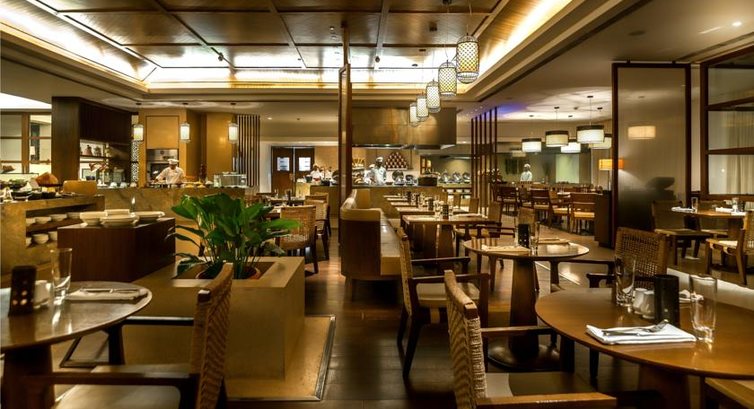 Завтраки вполне удовлетворительнын: сыры нескольких видов, мюсли, йогурты, фрукты, пара видов какой-то снтетической колбасы, яйца во всех видах: омлеты, яичницы, просто свареные вкрутую или всмятку. Жарят какие-то куриные сосиски, предлагают свежезапечёную ветчину и т.д. Но в течение дня поесть в отеле вы не сможете ни в одном ресторане или баре: еду надо заказывать только в номер. Через всю территорию снуют официанты с подносами, которые даже салфеткой не прикрыты! Никаких ресторанов, кафе или шеков поблизости нет, учитывайте этот факт, бронируя номер. Ужин начинается с 19.00, тогда-то и открываются рестораны: местная кухня, рестранчик морепродуктов (готовят их на гриле), и основной ресторан с еврпейскими блюдами.