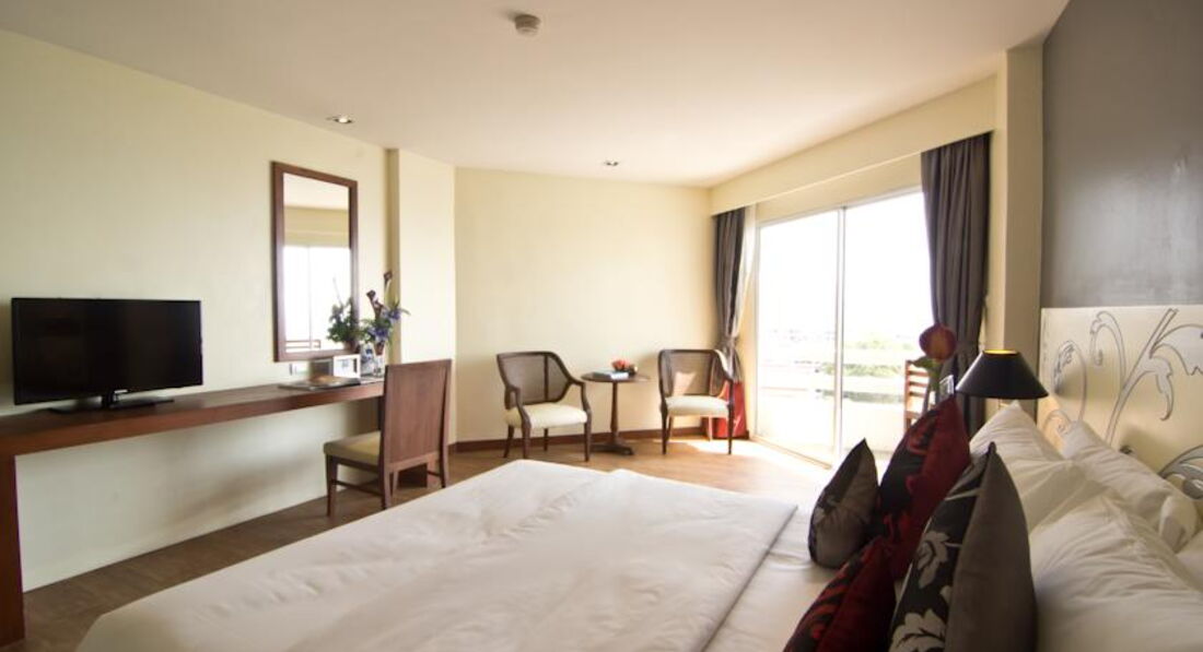 Отдыхали в данном отеле в конце ноября с ребенком 8 лет.Ехали на 12 дней. Заранее читали отзывы предыдущих туристов и готовились ко всему. Таиланд впечатлил. Приехали в отель вечером, затемно уже. Так как готовились, то уже знали куда идти менять деньги и где поесть)) Отправились прямиком в обменник и потом на ночной рынок поужинать. Глаза разбегались от всего увиденного. Огромное количество проводов низко свисавших повергли нас в шок. Вообще первые три дня мы пребывали в какой-то прострации)). Потом постепенно привыкли и даже как то сроднились с этим городом. На следующий день встретились с гидом, с ним познакомилась в одноклассниках, а нашла его благодаря другим отзывам. В день приезда нам раздали туристические симки, мы зашли в первый же магазин и парнишка кассир вставил нам симку в айфон и показал какую карточку для оплаты инета купить и все, мы на связи!!! Он нам принес прайс и посоветовал на какие экскурсии поехать с ребенком чтобы было интересно. Всегда был на связи и всегда отвечал на интересующие нас вопросы. Заходили в уличные агенства, цены примерно одинаковые. Ездили на реку Квай на два дня, вообще супер! Если еще раз поедем, то опять возьмем эту экскурсию. Ездили в сад Нонг Нуч, на Военный пляж(там просто супер купаться),встретили там тех с кем летели в самолете. Там и покушать можно очень вкусно и недорого, прям дешево я бы сказала. Еще ездили на кучу экскурсий. не помню уже. Уезжать не хотелось и еще долго скучали и страдали по Таиланду. Сам отель отличный на мой взгляд, завтраки прекрасные, чистота везде. За 12 ночей на завтраках заплатили около 90 тысяч за двоих с ребенком. Персонал очень отзывчивый и улыбчивый. Рекомендую на все 100%.