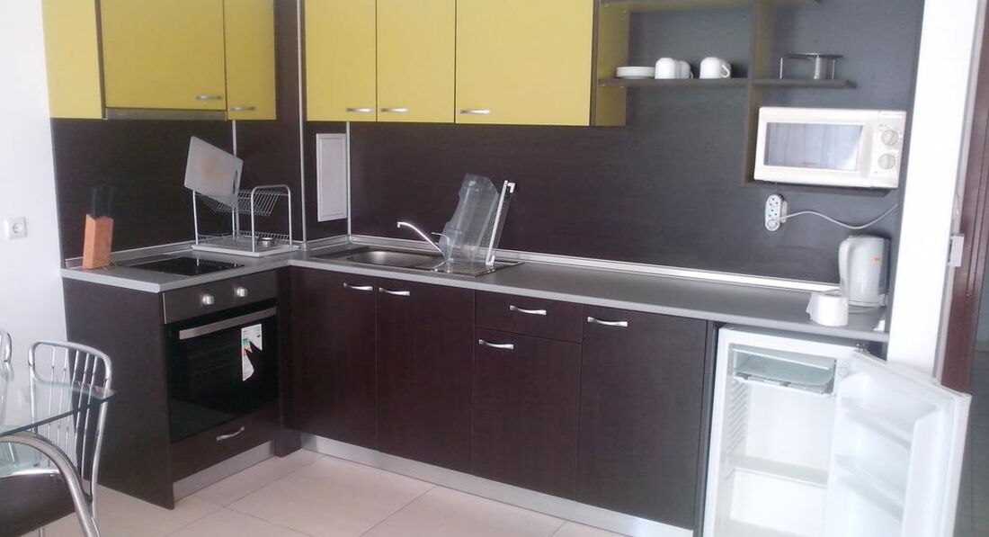 •Кухонне обладнання: Мікрохвильова піч, плита, посуд для приготування їжі