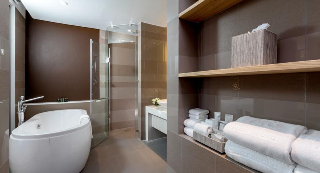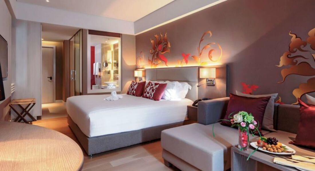 Нам достался номер на 6 этаже. Все номера с видом на бассейн. Номер (брали супериор) маленький, но нам места вполне хватало. Единственное, что совсем нет балкона, только, чтобы высунуться и повешать сушить вещи, не больше. Одно название, что это балкон. К этому мы уже тоже были готовы, поэтому если хотите посидеть на балконе, то только люксы. В номере есть всё, что нужно. Очень удобная, огромная кровать. Кондиционер работал исправно и дул не на кровать, а в сторону. Я обычно простываю от кондея, но тут за 2 недели даже не чихнула. Это порадовало. Напрягало отсутствие хотя бы одного русского канала. Я понимаю, что в Тай едут не в номере сидеть, но когда приходишь в номер всё равно хочется что-нибудь посмотреть и послушать на родном языке.......есть на всех языках только не на русском. Поэтому если отель хочет, чтобы русские туристы посещали его, то надо бы исправить это, я считаю, неуважение.