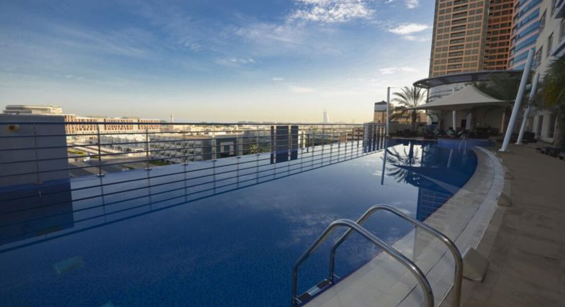 Отель небольшой.Минус Wi-fi платный в отеле везде.Бассейн(маленький и не уютный),сауна и спа-центр в отеле на 6 этаже. Плюс довольно удобное расположение, рядом метро, супермаркет, аптека, на такси минут 5 до Burj Al Arab. В номере небольшая кухня, вместо твина(2 раздельные кровати) нас заселили в дабл(одна большая кровать).При заселении сразу же проверьте все эл.приборы на работоспособность(в отеле за поломку двери стиральной машинки штраф 150 дирхам- поэтому машинку в первую очередь). Бесплатного автобуса до моря в отеле нет, как пояснили нам -это не входит в обязанности отеля. Поэтому можно доехать до станции метро Dubai Marina(36) и за минут 5-10 дойти до отличного бесплатного пляжа.