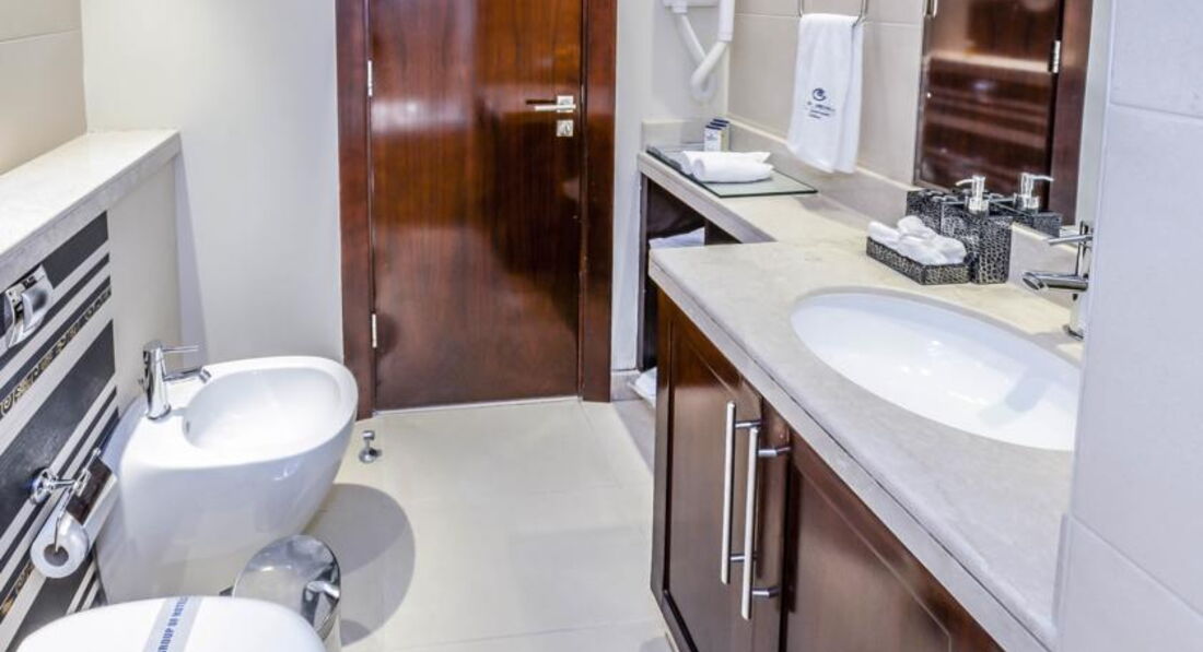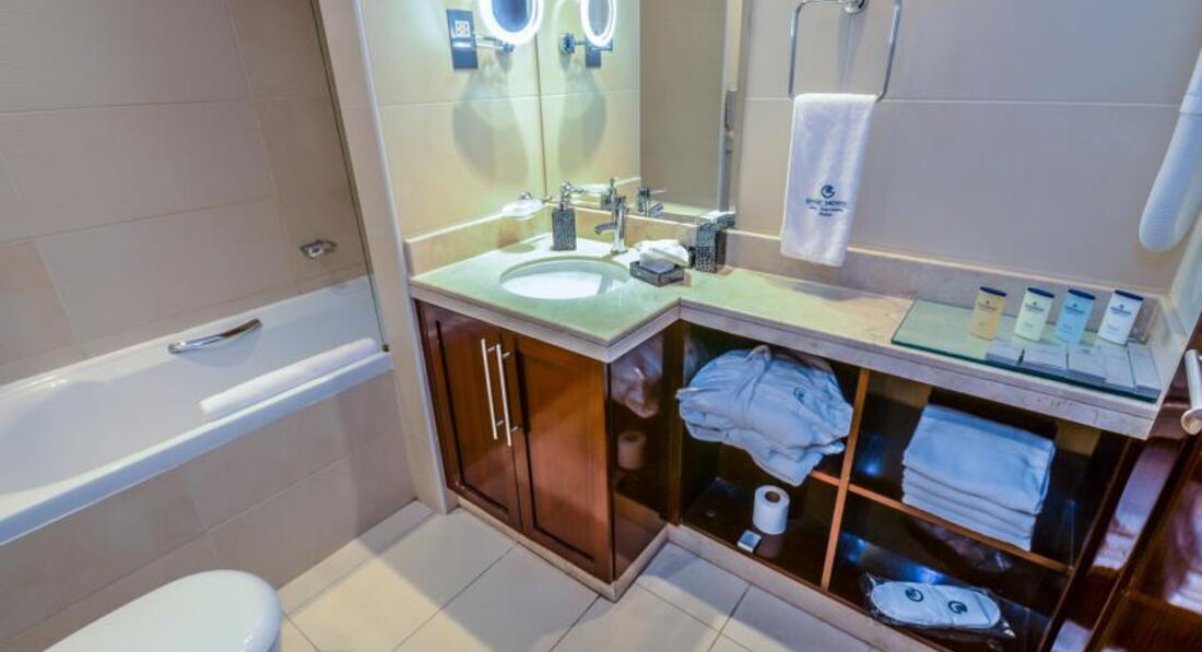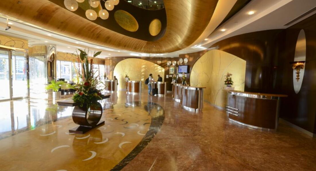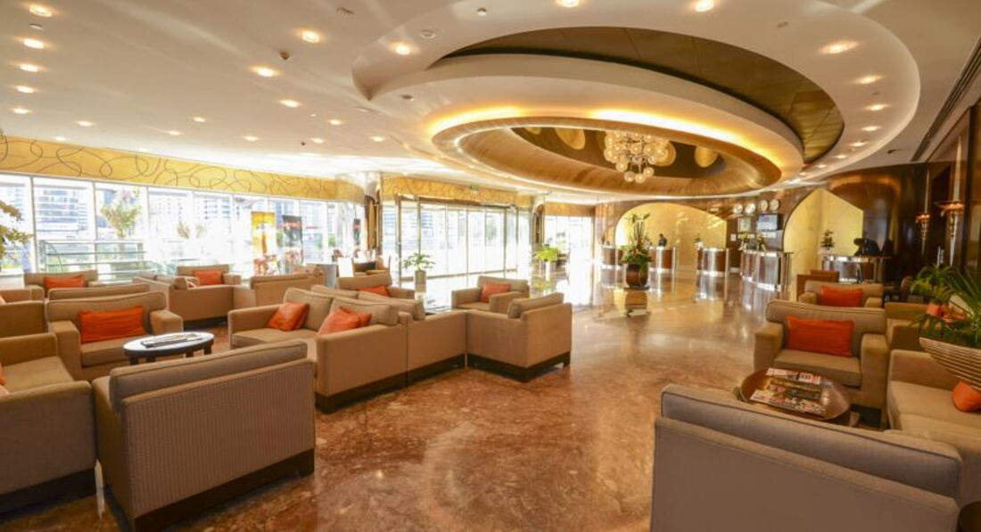 Общее впечатление - отель очень среднего уровня. Вход в отель с задней его части, с главного входа выходить не советую - даже дороги нет как таковой, потому что все подъезды к отелю с внутренней стороны. При въезде в отель сразу берут депозит в размере 500 дирхам, убирают только 2 раза в неделю. Мини бар - платный. Питание - дорогое. Гораздо интереснее во всех отношениях радом расположенный отель Глория: номера богаче, 3 бассейна, полноценный тренажерный зал, сауна нормальных размеров, а не камера- одиночка. Очень хорошее кафе на 40 этаже с обзорным видом на побережье.