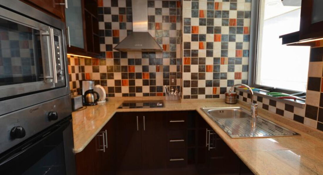 Аппартаменты были на 7 этаже. Окна на шоссе, но их в принципе незачем открывать, т.к. в номере мощный кондиционер. Из окна видно бассейн и линию метрополитена. Номера почти все стандартные. У нас на двоих с подругой были одна односпальняя кровать и одна двуспальная. В номере есть всё: диван кожаный, шкаф с сейфом, телевизор с 2 русскими каналами, барная стойка, холодильник, микроволновка, чайник, тостер, плита, стиральная машина, все необходимые приборы. И самое главное утюг с гладильной доской. В туалете ванна, умывальник, унитаз и биде. Номера закрываются магнитным ключом. Уборка номеров производилась ежедневно, если вывешиваешь соответствующую табличку. Смена полотенец (комплект из 2-х штук) ежедневно. Один раз поменяли постельное бельё.