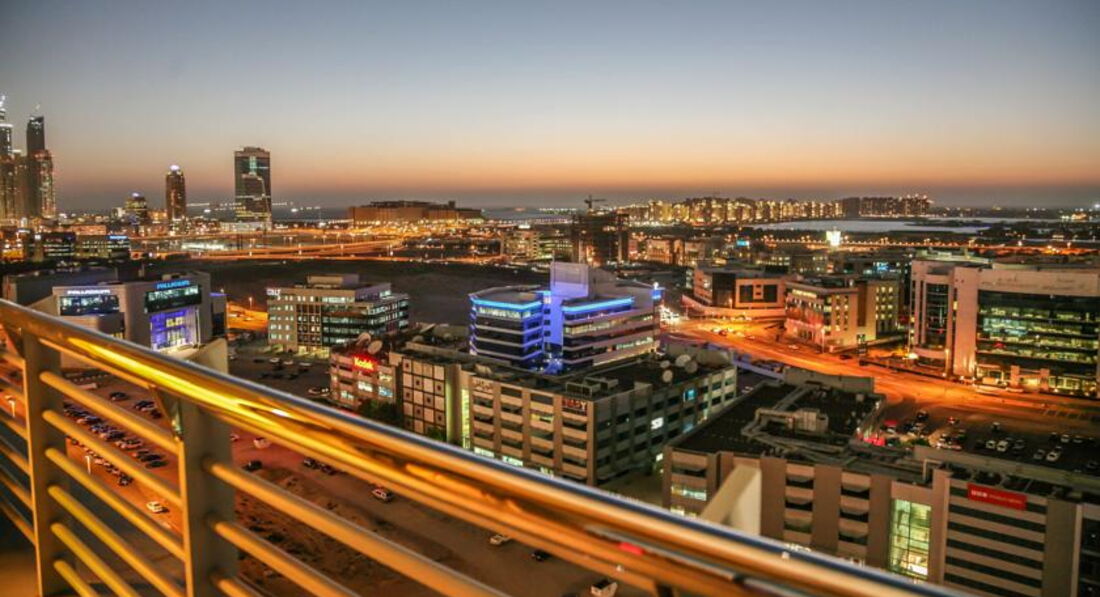 Отель расположен на шоссе Шейха Зайеда рядом со станцией метро Интернет сити. Выход с ресепшена на две стороны. Центральный выход на шоссе был не до конца благоустроен. То есть к входной группе нет благоустроенного твёрдого покрытия. Приходилось идти по песчаной пустыне. Предусмотрен второй выход с противоположной стороны. Там местная дорога и туда подъезжает весь автотранспорт. Поэтому, кто не хочет идти по песку, может дойти до метро с внутренней стороны.