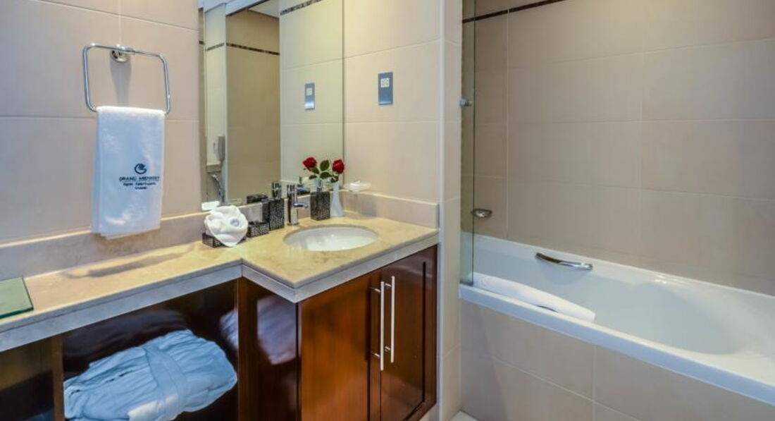 Посетил ОАЭ в 9 раз. Выбрал отель Гранд Мидвест -апартаменты.В аэропорту обменял 100 баксов на местные для турист сбора. Номер получили на 20 этаже с видом на залив (вид отличный) 2-х комнатный с кухней. Кухня укомплектована: плита, микроволновка, холодильник, электрочайник посуда не полный комплект вилок и ложек, чашек.