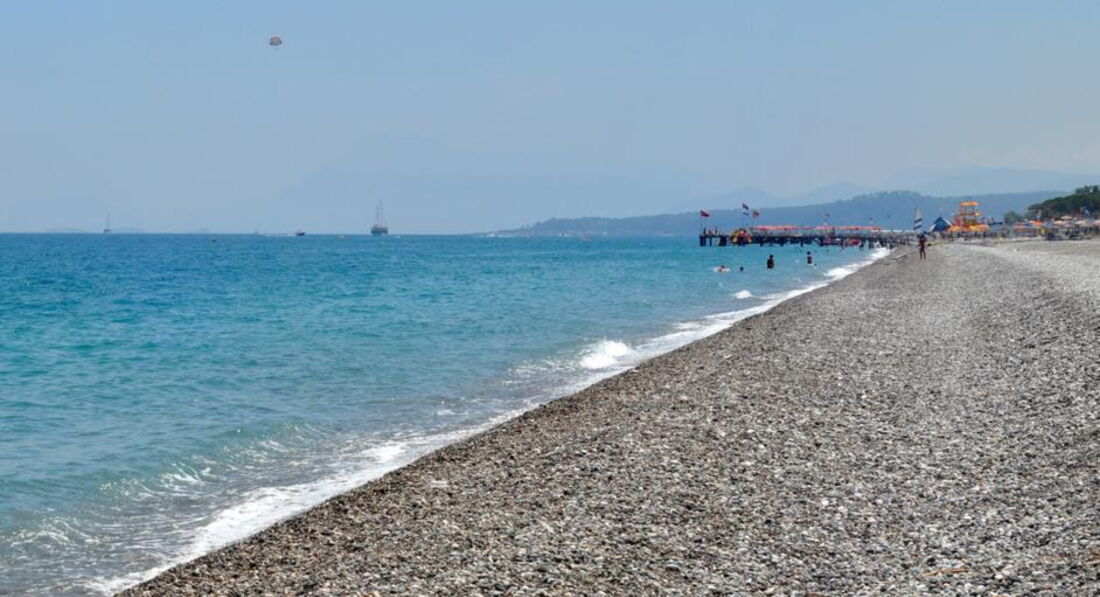 На пляж ездит шатл, нам было очень удобно, сели в тенечке, 5 минут и вы на пляже, там минутки 2-3 пешком. Пляж от отеля- галечный. Немного грязноват, были окурки, после замечания работникам пляжа, стали раздавать пепельницы курящим. Много туристов, которые лежат и дымят на детей (это неприятно, но уже вопрос о культуре к нашим соотечественникам)