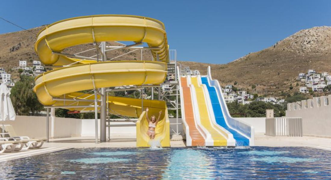 Есть водные горки, которые вынесены за основную территорию отеля.