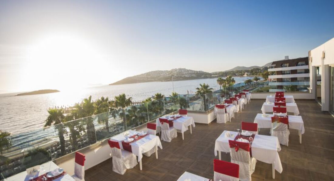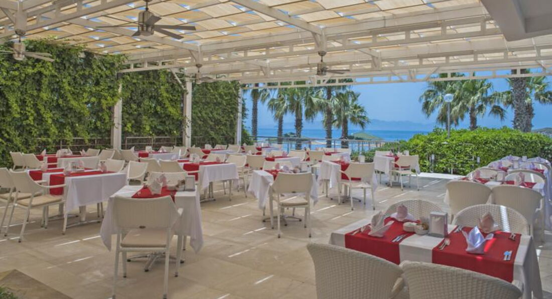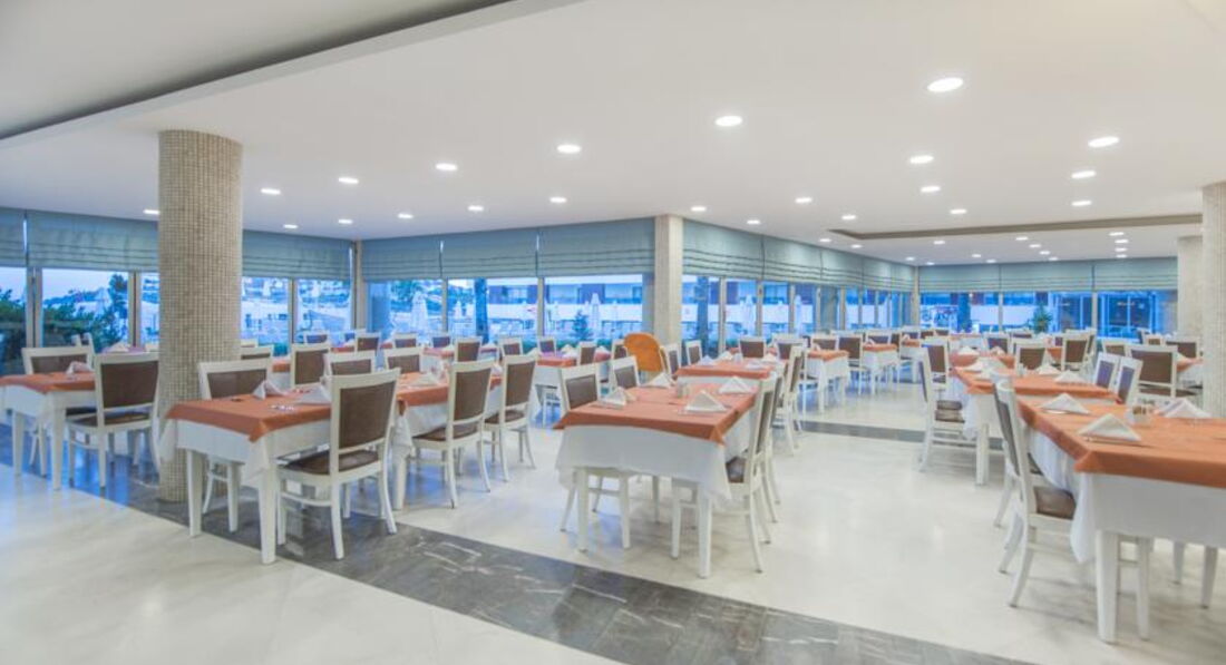 головний ресторан розрахований на 500 осіб (критий, літня тераса, дитячі стільці), лобі-бар (10:00-24:00), бар на пляжі (10:00-24:00), диско-бар (23:30- 02:00), снек-бар (12:00-17:00). 2 ресторани A la Carte: італійська - безкоштовно 1 раз на тиждень, за попередньою резервацією; рибний – платно, за попередньою резервацією.