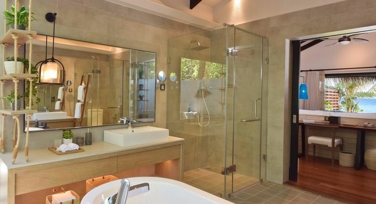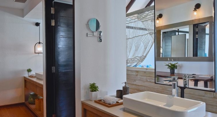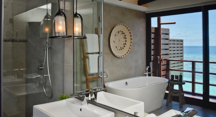 Типи номерів: 28 Ocean Water Villas (80 кв.м., ліжко king-size, вид на океан, приватна тераса з шезлонгами та спуском в океан, підлога з прозорою скляною панеллю) 31 Ocean Water Villas with Pool (93 кв.м. + басейн на терасі) 18 Lagoon Water Villas (80 кв.м., вілли розташовані в лагуні, за наповненням ідентичні номерам Ocean Water Villa) 11 Lagoon Water Villas with Pool (93 кв.м. + басейн на терасі) 18 Beach Pool Villas (78 кв.м., вілли розташовані на березі, мають прямий доступ до пляжу, ліжко king-size, тераса з приватним басейном) 5 Grand Residences (210 кв.м., 2 спальні, 2 ванні кімнати, 1 ліжко king-size + 2 односпальні ліжка, тераса з басейном, обіднім столом та спуском в океан, підлога з прозорою скляною панеллю)У номері: • душ та ванна • душ на відкритому повітрі • телевізор • сейф • Wi-Fi (безкоштовно) • міні-бар • набір для приготування чаю/кави