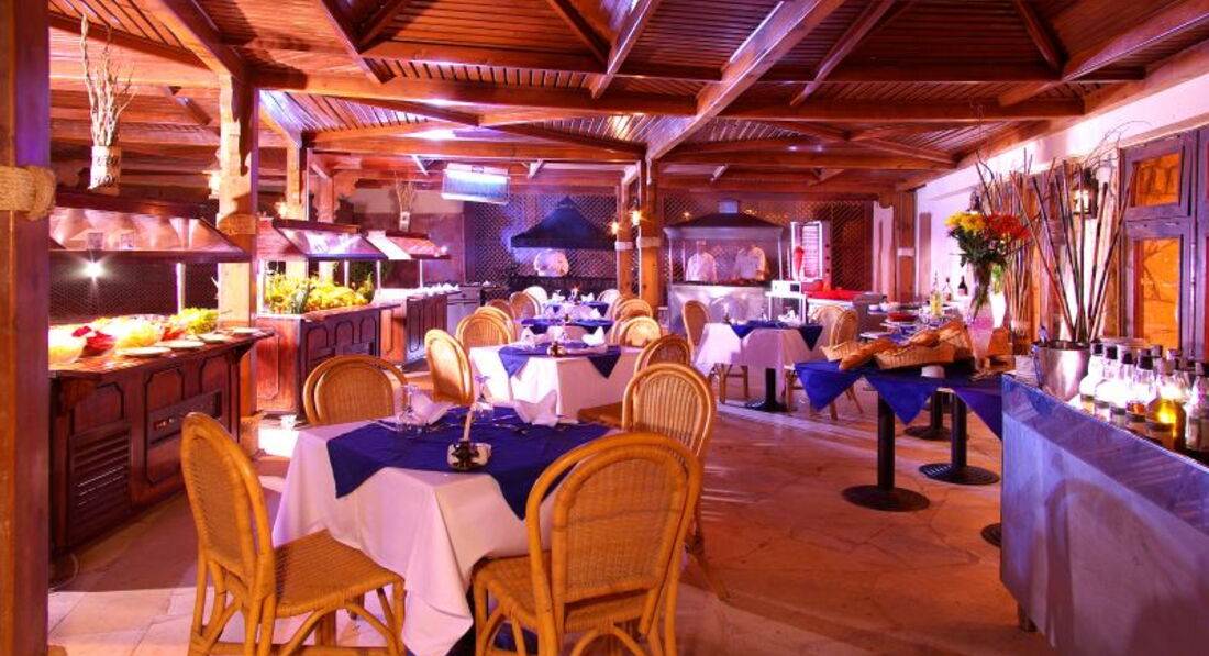 Питание в отеле нормальное. Всегда есть, что поесть, но разнообразия никакого. На завтрак вкусный омлет, круассаны, сыр и колбаса так себе. Кофе отвратительный. На обед супы, рыба и курица, мясо реже. Все это практически без вариаций. К этому в качестве гарниров рис, макароны или картофель. Были фрукты и дессерты, но последним также не хватало вкуса. Праздником вкуса был гриль, но не каждый день. А вот в барах понравились коктейли, были дайкири, мохито, мешали что-то с гренадином. Очень помогали чаевые, 1 доллар и все только для вас.