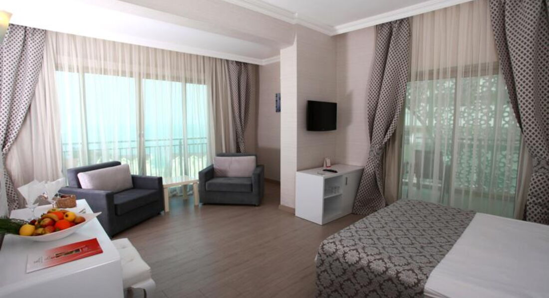Отдыхали с сыном в этом отеле с 21.06.17 по 01.07.17.Заехали утром,очень уставшие Т к рейс задержали на 12 ч,сразу отправили на завтрак и в течении 30 минут заселили.Номер хороший,отличный вид,но не работал замок на балкон и дверь шкафчика.На ресепшене Гульнара была очень вежлива и парень турок имени не помню,сказали,что все устранят.Пока мы были на море действительно все быстро устранили.За номер с отличным видом ничего не платили,на это даже и намека не было.Все приветливые,вежливые,добродушные.Мы в Турции впервые м б не с чем сравнивать.Сыну 15 лет,боялась что ему будет скучно,но аниматоры Юлия и Юлия скучать не давали,ребята аниматоры тоже молодцы (имен не помню).Были игры у бассейна,всяческие конкурсы,музыка,все танцуют,веселятся,а вечерами вообще устраивали шоу,очень красиво и интересно.Ребята ездили в ночной клуб,там приезжал какой-то репер(в этом не разбираюсь),аниматоры приглашали желающих,мой сын захотел.Я конечно переживала,но аниматоры успокоили и я разрешила,сыну очень понравилось.И сама я не скучала,отель веселый и радостный.Питание хорошее,персонал очень вежливый.Рада что поехала именно в этом отель,надеюсь побывать там еще!!!Всем рекомендую!!!