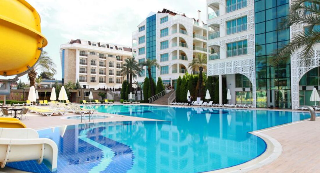 Отдыхали в отеле с 10 летним ребенком с 19.06.2017 по 30.06.2017. Мы второй раз в этом отеле, последний раз были там полтора года назад. когда были впервые, это был октябрь месяц, сервис был слабоват, особенно это было заметно в ресторане, но в остальном было все неплохо. Нам понравилась ухоженная территория, хотя отель небольшой, неплохая ненавязчивая анимация. В этом году мне очень понравилось! Увидели знакомые лица персонала давно уже работающих в отеле. Очень порадовал сервис! Чистота идеальная, питание прекрасное! Возможно кому то покажется маловатым разнообразие мясных блюд, но нас все очень устроило!!! Были фрукты, дыни, арбузы, черешня,абрикосы! Я уже не говорю про различные пирожные и похлаву, без этого Турция не Турция)))) Два раза в день работают горки, под присмотром спасателя. Лежаки не сломанные, чистенько, матрасики на лежаках новенькие. Всем хватало места на пляже. Очень интересно проходит время на пляже. Работники водного спорта ненавязчиво рассказывают отдыхающим не только об водных видах отдыха , но и радуют анекдотами, загадками и просто отличной музыкой, за что им тоже отдельное спасибо! Вечером обычно проходит шоу программы, иногда приезжают профессиональные танцевальные группы, акробаты, проходят и пенные вечеринки. С детьми весь день занимаются детские аниматоры, имеется лужайка где дети с удовольствием общаются с павлином, курочками и циплятами , живет там и белый кролик, вечером как обычно для детей мини диско. Вобщем очень неплохая пятерочка! Рекомендую и молодым людям (вечерние дискотеки имеются прям в отеле), так же и семьям с детьми. Отель не большой, легко завязывается общение, а вечером все за столиками общаются как родные)))). Анимация веселая, персонал очень доброжелательный, на ресепшене очень понравилась Гульнара! Не говорю , что это отель для любителей дорогих пятерок, но я 13 раз в Турции, бывала в разных отелях, скажу только что меня все очень порадовало и устроило!