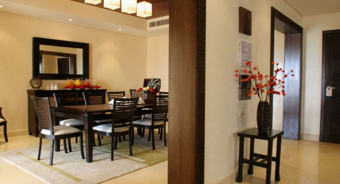 Готель складається з головної будівлі, дев'яти 2-4-6-ти поверхових корпусів та дев'яти 2-х поверхових вілл. 526 номерів, з них: 138 Classic Room (28-42 кв. м, макс. 2+2 чол., спальня, ванна кімната); 74 Deluxe Room Sea View (28-42 кв.м, макс. 2+2 чол., спальня, ванна кімната); 76 Grand Deluxe Pool & Sea View (28-42 кв.м, макс. 2+2 особи, спальня, ванна кімната); 139 Premium Sea Front (28-42 кв. м, макс. 2+2 чол., спальня, ванна кімната); 62 Club Rotana Room (28-42 кв. м, макс. 2+2 чол., спальня, ванна кімната); 18 Club Rotana Suite (82 кв. м, макс. 2+2 чол., Вітальня, спальня з дверима, 2 ванні кімнати); 6 Club Rotana Premium Suite (82 кв. м, макс. 3+1 чол., Вітальня, спальня з дверима, 2 ванні кімнати, приватна тераса); 2 Grand Suite (144 кв. м, макс. 3+1 чол., Вітальня, 2 спальні з дверима, 3 ванні кімнати, джакузі); 9 Royal Villa (372-566 кв. м, 2 поверхи, басейн, сад, вітальня, 4-5 спалень, 4-5 ванних кімнат, їдальня, гараж, кухня); 36 Connection Room. 3 номери для інвалідів. Російськомовний персонал. Проживання із домашніми тваринами заборонено.